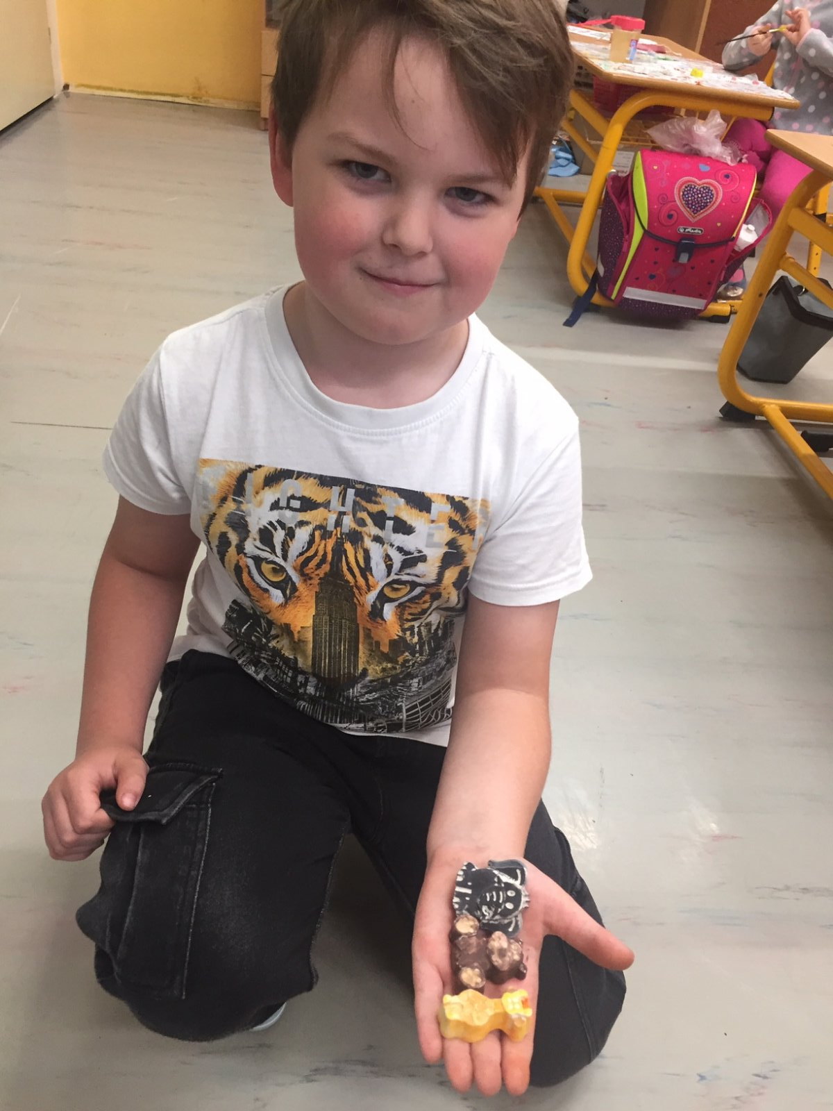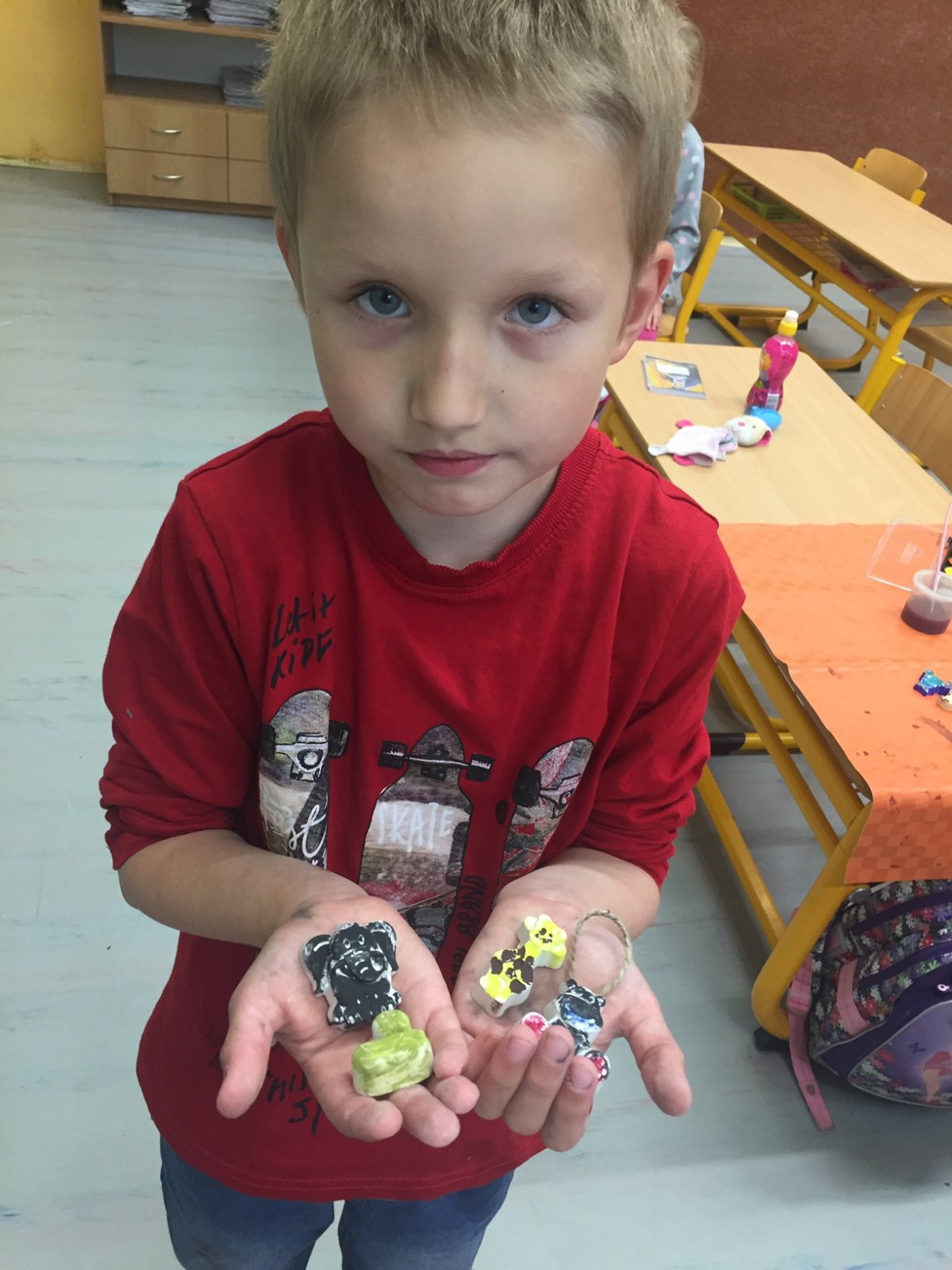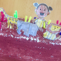 V týdnu od 25. května zažily děti z 1.E netradiční projektové dny - dny černého kontinentu. Snahou bylo dětem přiblížit život lidí a zvířat v Africe a zároveň si s nimi vytvořit několik výrobků. Malování sádrových odlitků zvířátek mělo u dětí velký úspěch. Navštívil nás i král zvířat a děti si vyrobily prstové maňásky, se kterými si následně mohly zahrát na africké safari. Výroba afrického kontinentu děti taky velmi zaujala a tyto výrobky nyní zdobí naši třídu. Nakonec jsme si zazpívali písničky o Africe a naučili jsme se rozpoznávat hlasy afrických zvířat.