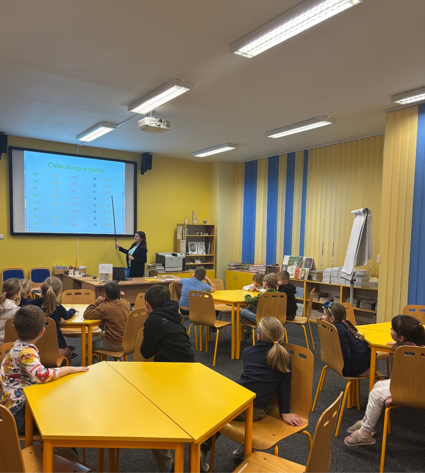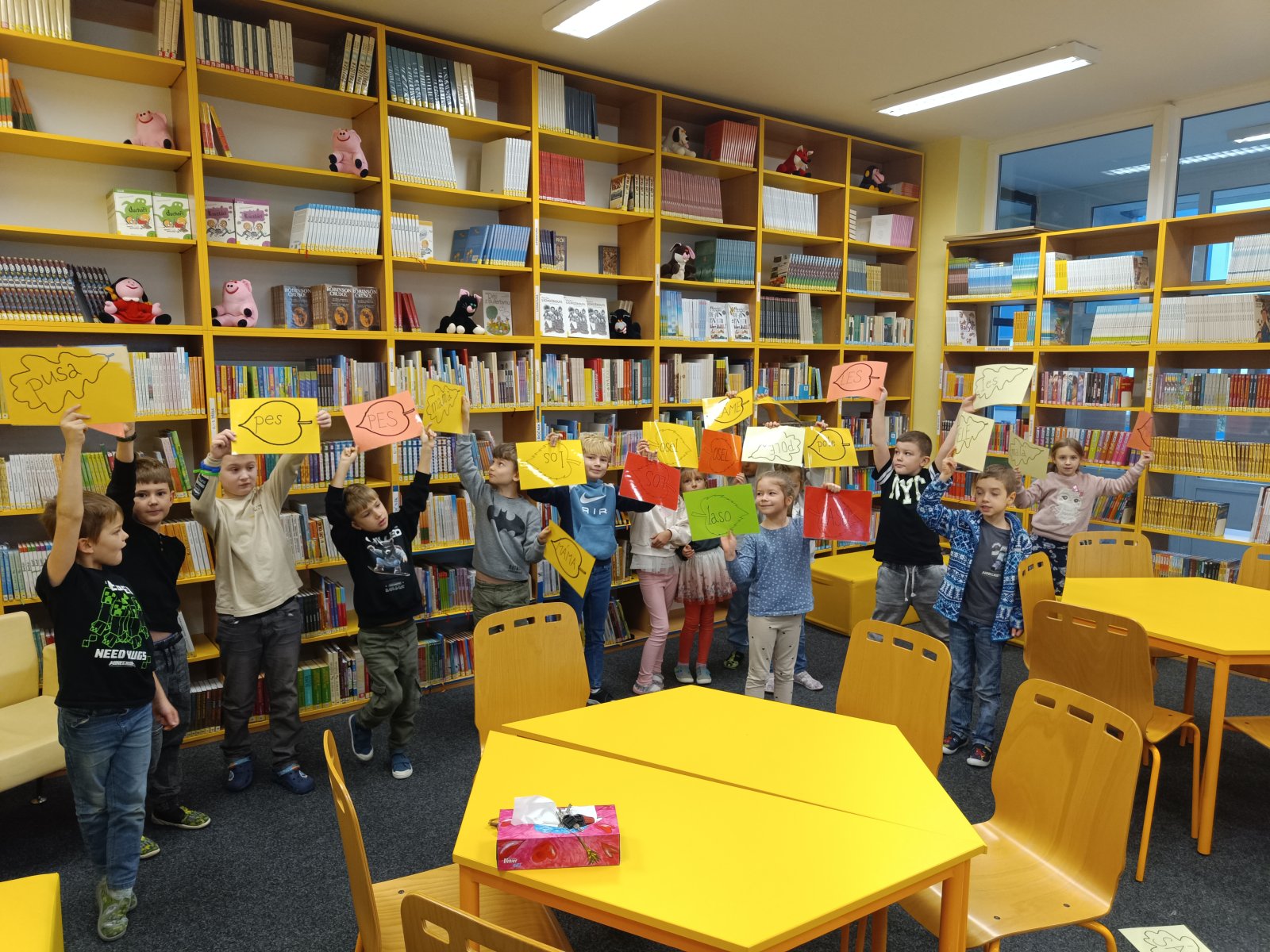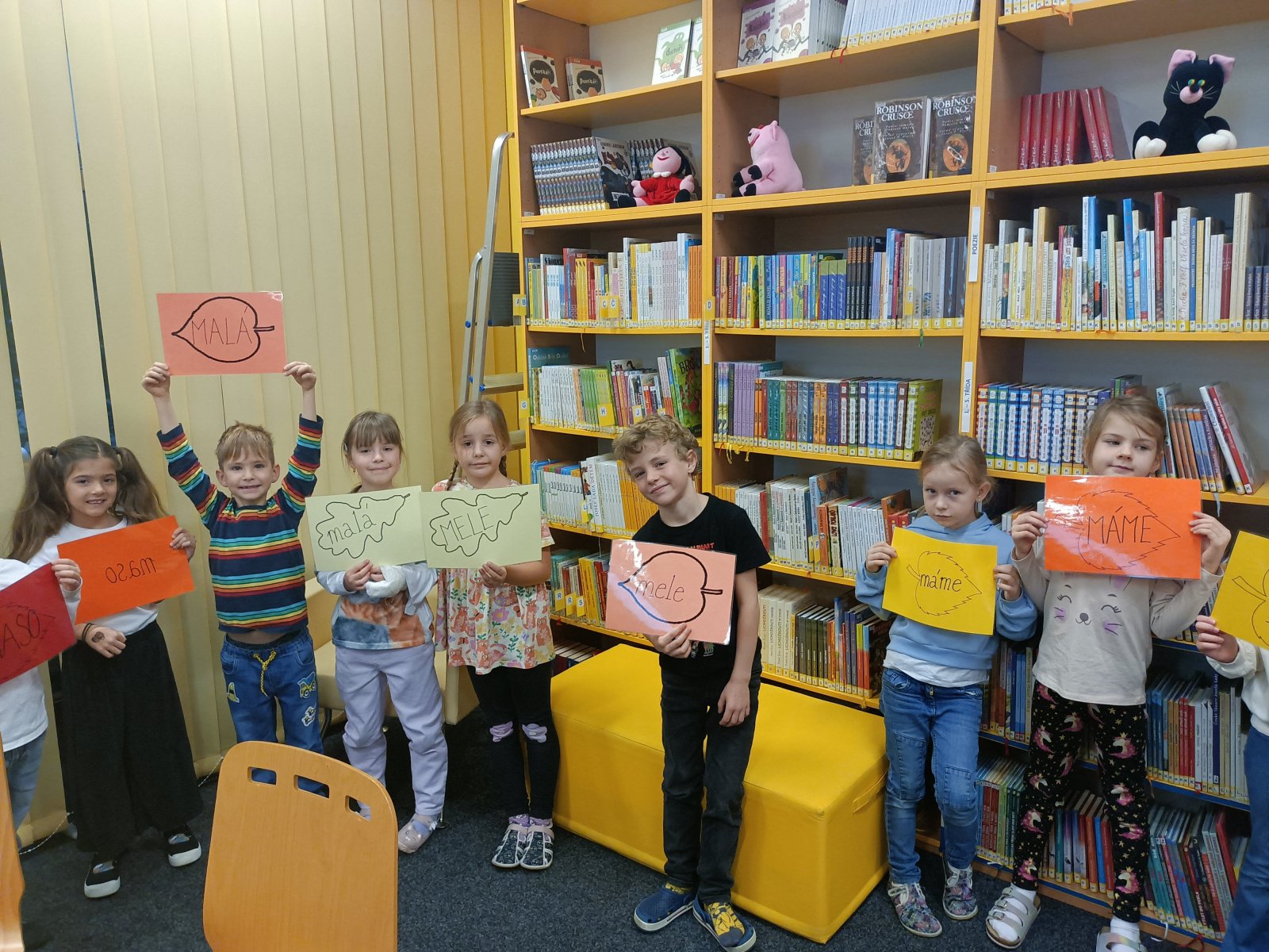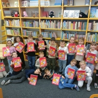 Prvňáčci se vydali na návštěvu do školní knihovny, kde na ně čekalo velké překvapení. Paní knihovnice pro ně měla nachystané Slabikáře.