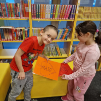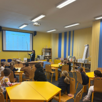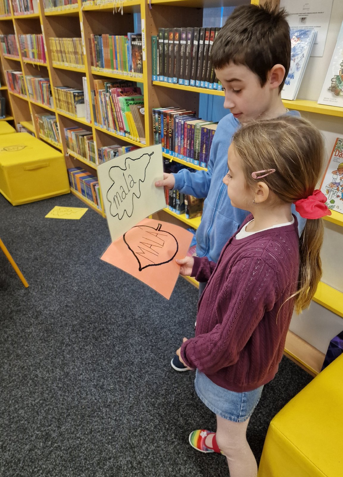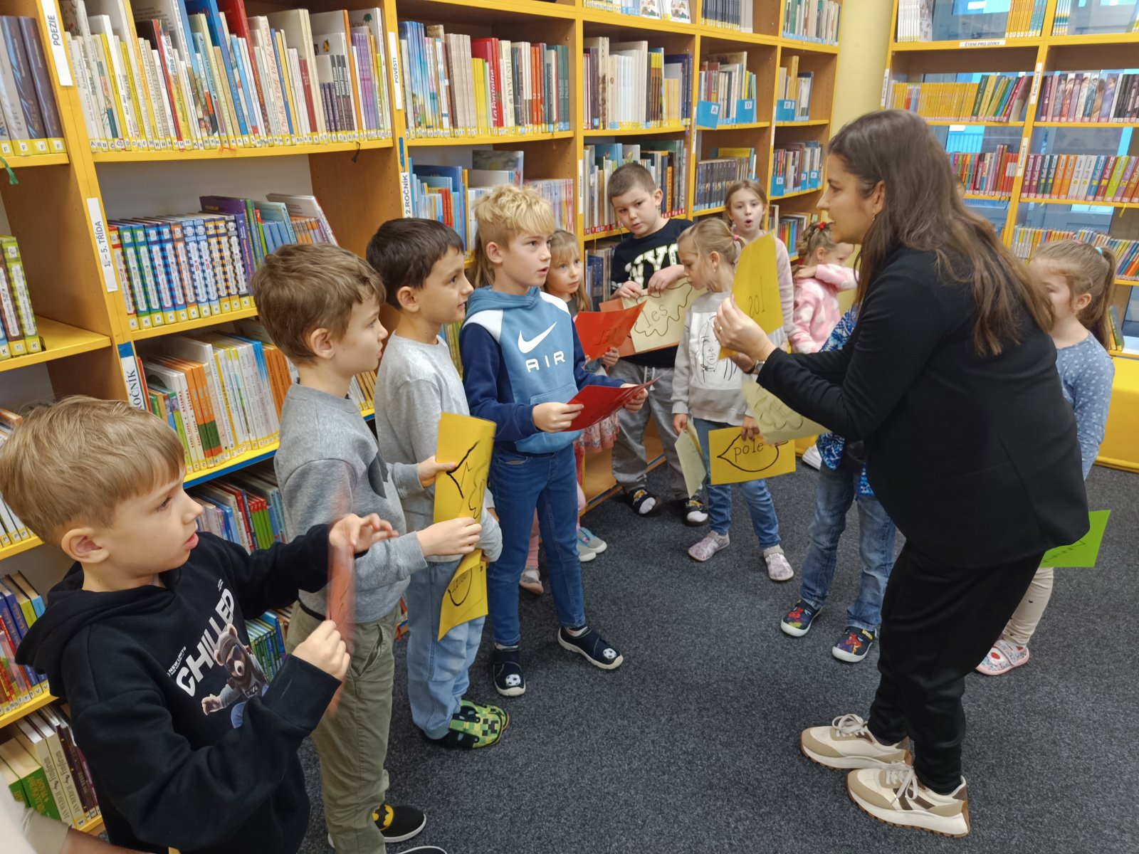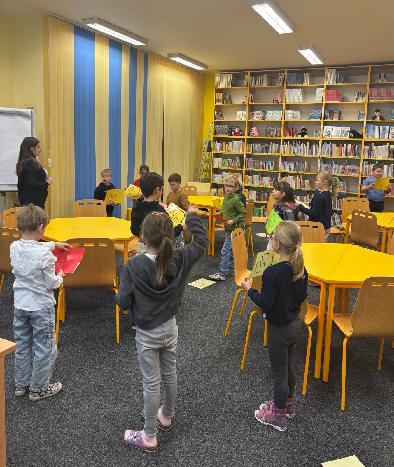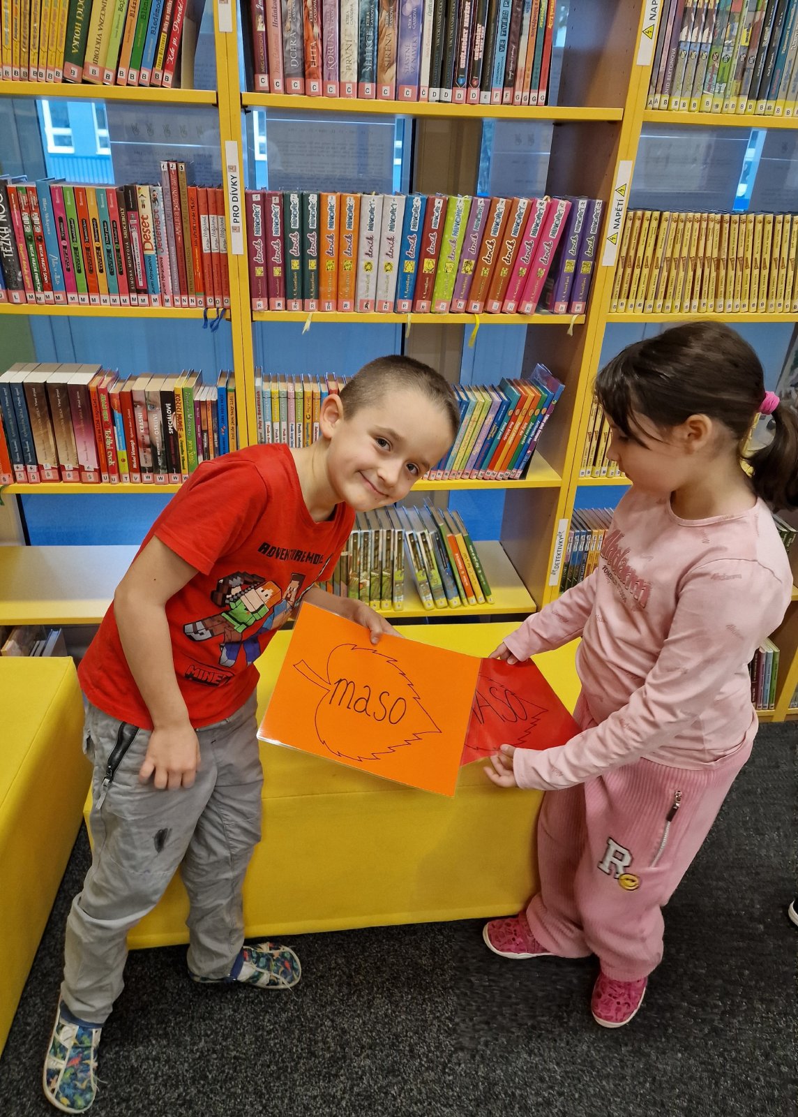Prvňáčci se vydali na návštěvu do školní knihovny, kde na ně čekalo velké překvapení. Paní knihovnice pro ně měla nachystané Slabikáře.