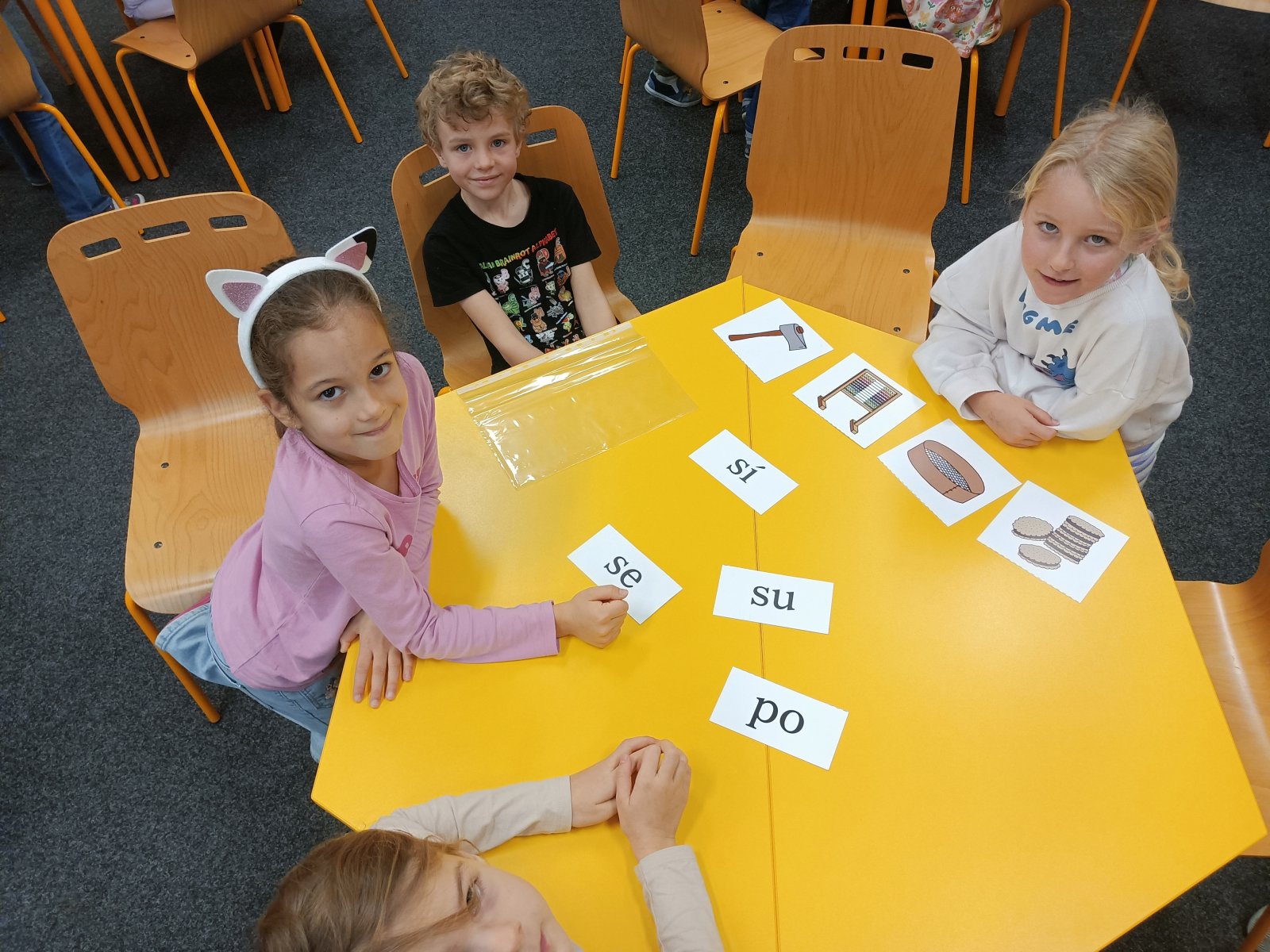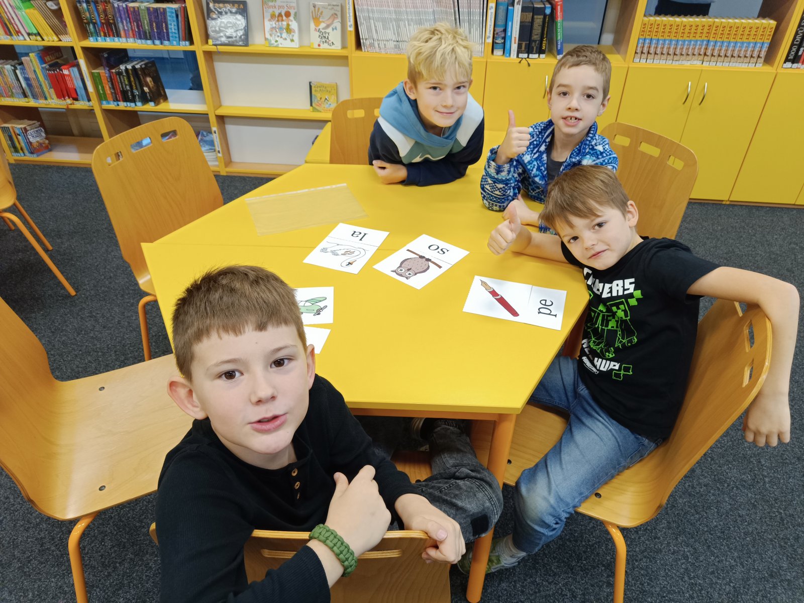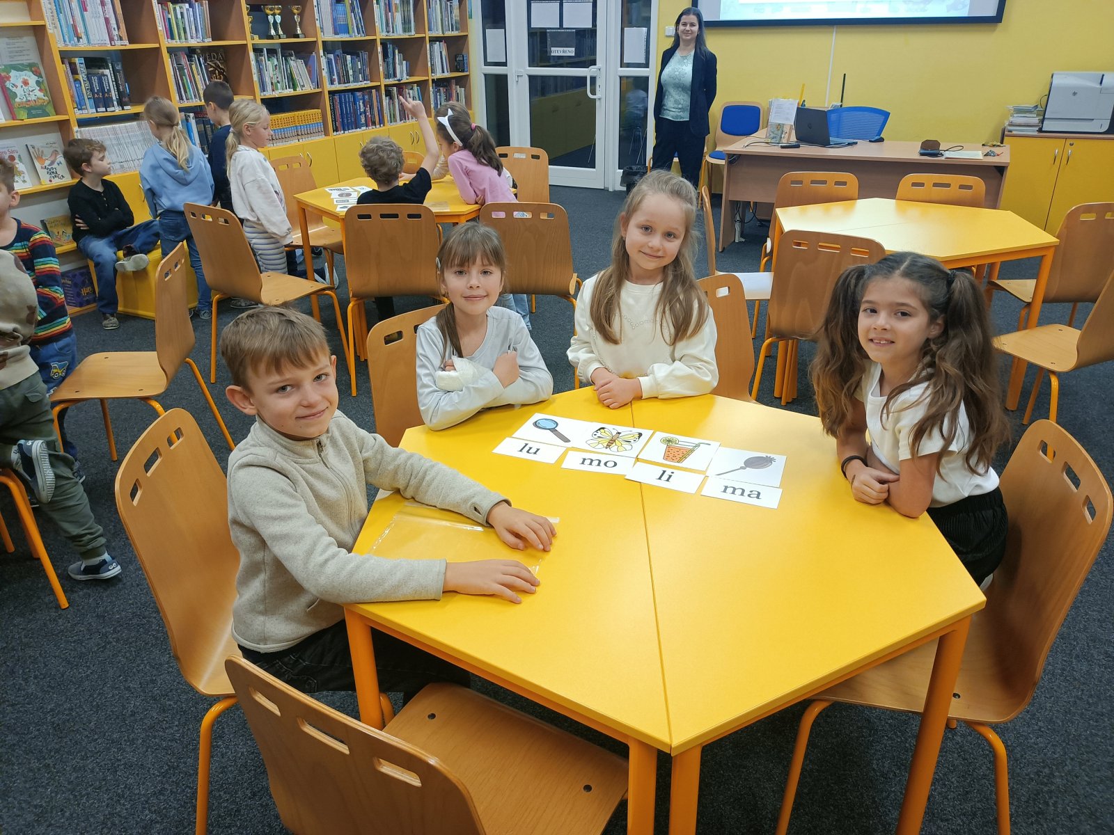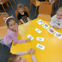 Získat je, byla pro děti první zkouška. Plnily různé úkoly, aby dokázaly, že si Slabikář zaslouží. Přiřazovaly slabiky k obrázkům, hledaly správné dvojice slov, četly slabiky a slova na tabuli. A také ukázaly, že dovedou spolupracovat.