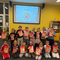 Všechny úkoly zvládli prvňáčci na jedničku, byli moc šikovní! Proto jim paní učitelky, společně s paní knihovnicí, předaly Slabikáře, ze kterých se budou učit další písmenka a také číst první pohádky.