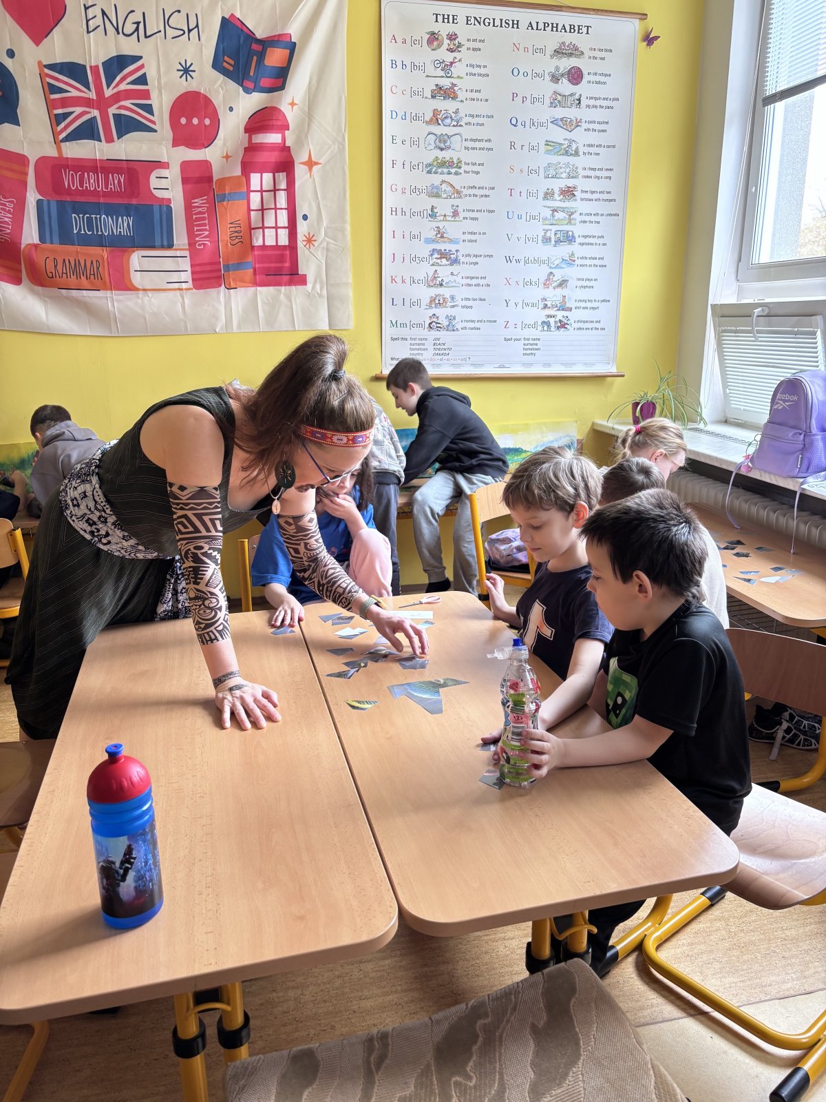 U příležitosti Dne učitelů se na našem 1. stupni uskutečnil projektový den, do kterého se zapojili všichni žáci. Děti byly rozděleny do smíšených družstev a postupně procházely sedm stanovišť, na kterých plnily rozmanité úkoly a dozvídaly se zajímavosti o různých koutech světa.