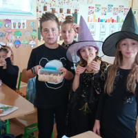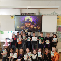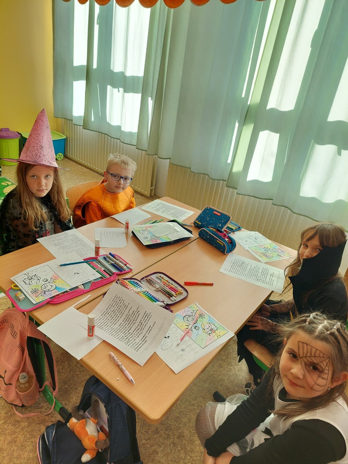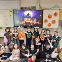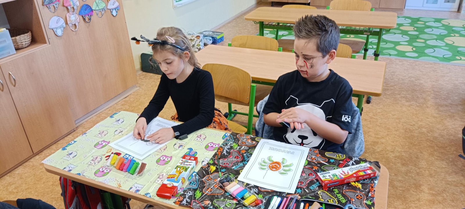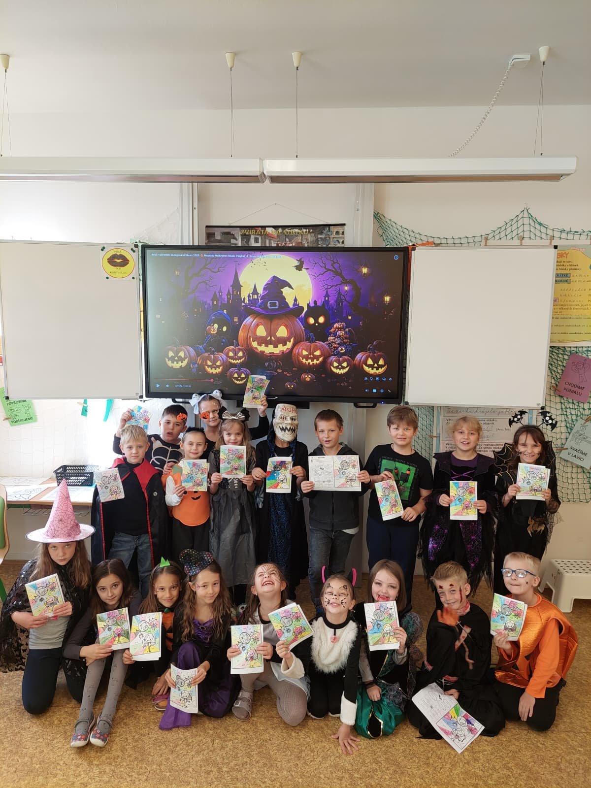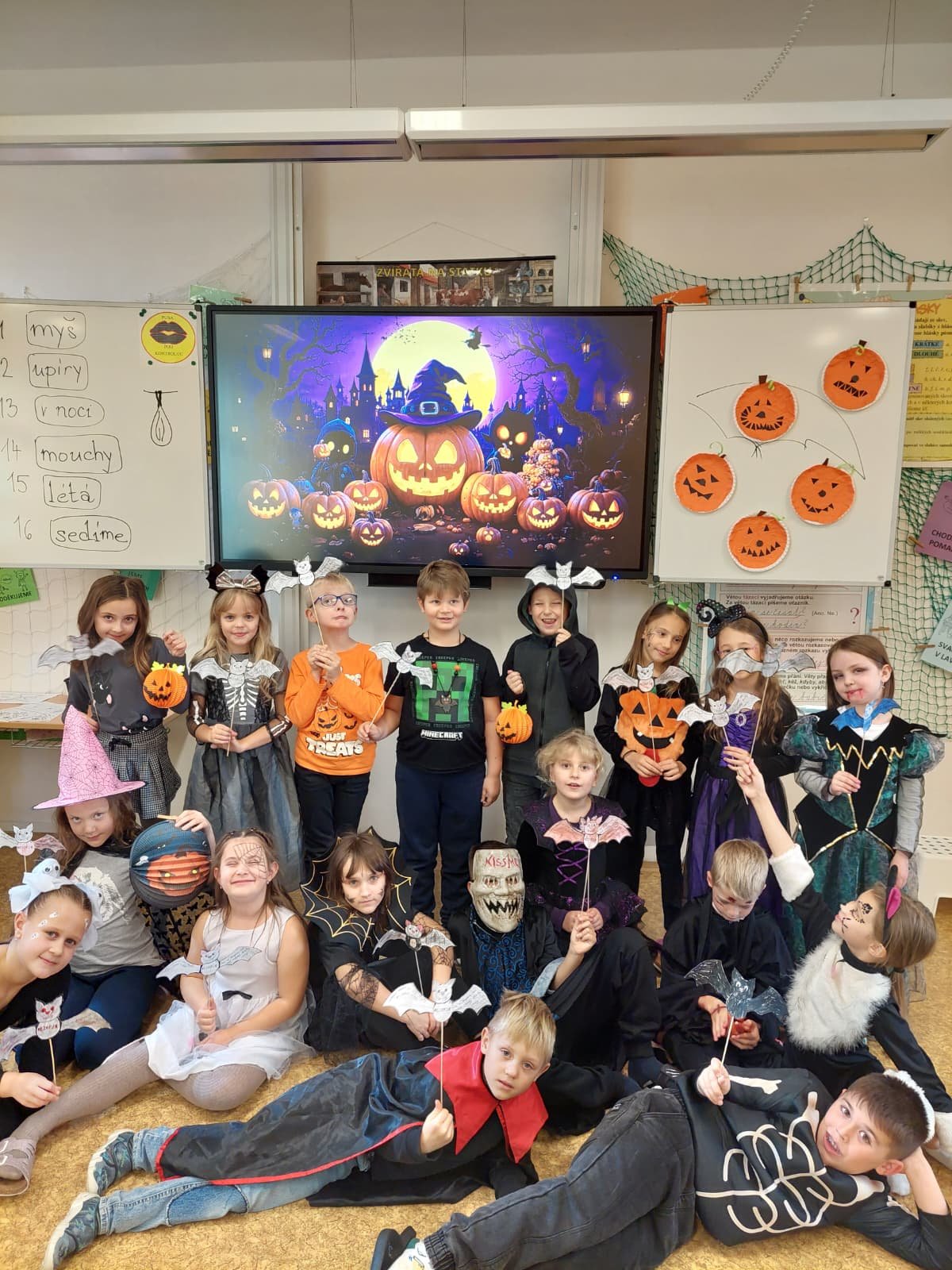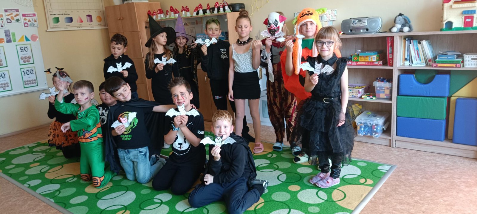 Poslední den v říjnu patří již tradičně Halloweenu. Druháčci přišli do školy v kostýmech a celé dopoledne je čekalo tematické vyučování v jednotlivých předmětech. Počítali s netopýrem Vilímkem, psali strašidelné zaklínadlo, pracovali s textem, malovali, vystřihovali, modelovali a hráli různé hry.