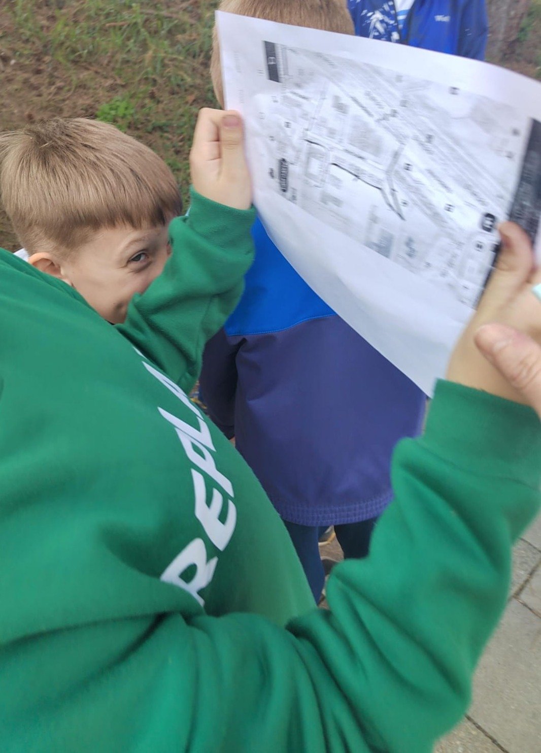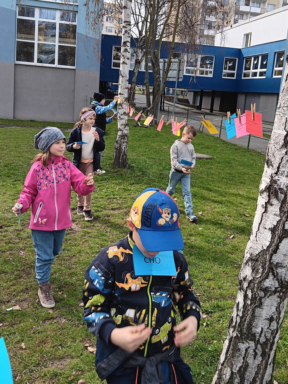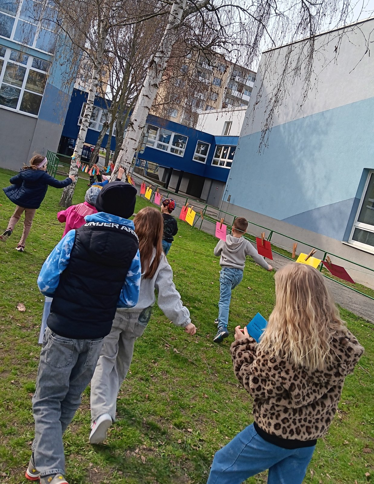 Všechno to začalo dopisem. Každé oddělení v něm našlo pokyny k hledání, svou herní barvu a hlavně mapu cesty. Ta začínala u školní závory a končila u bílých stromů. Při cestě podle mapy děti pozorovaly okolí a sledovaly, kde a co vidí, koho potkávají, kudy jdou a hlavně co je a není správné. Když všichni dorazili do cíle, posbírali si karty, které měly určenou barvu. Na kartách byly otázky, které se týkaly právě projité trasy a děti tak vzpomínaly, kolikrát šly přes přechod pro chodce, jaké potkaly živočichy, kde byl nepořádek nebo kolikrát odbočily vpravo či vlevo. Za každou správnou odpověď děti obdržely kartičku s nápovědou. Po získání a složení všech karet bylo jasné, kde je poklad. Stačilo jen vyslovit kouzelné slůvko „ prosím“ a pak se radovat z jeho obsahu. Cestou za pokladem tak naše družina prožila napínavé, veselé, poučné a netradiční odpoledne, které není každý den.