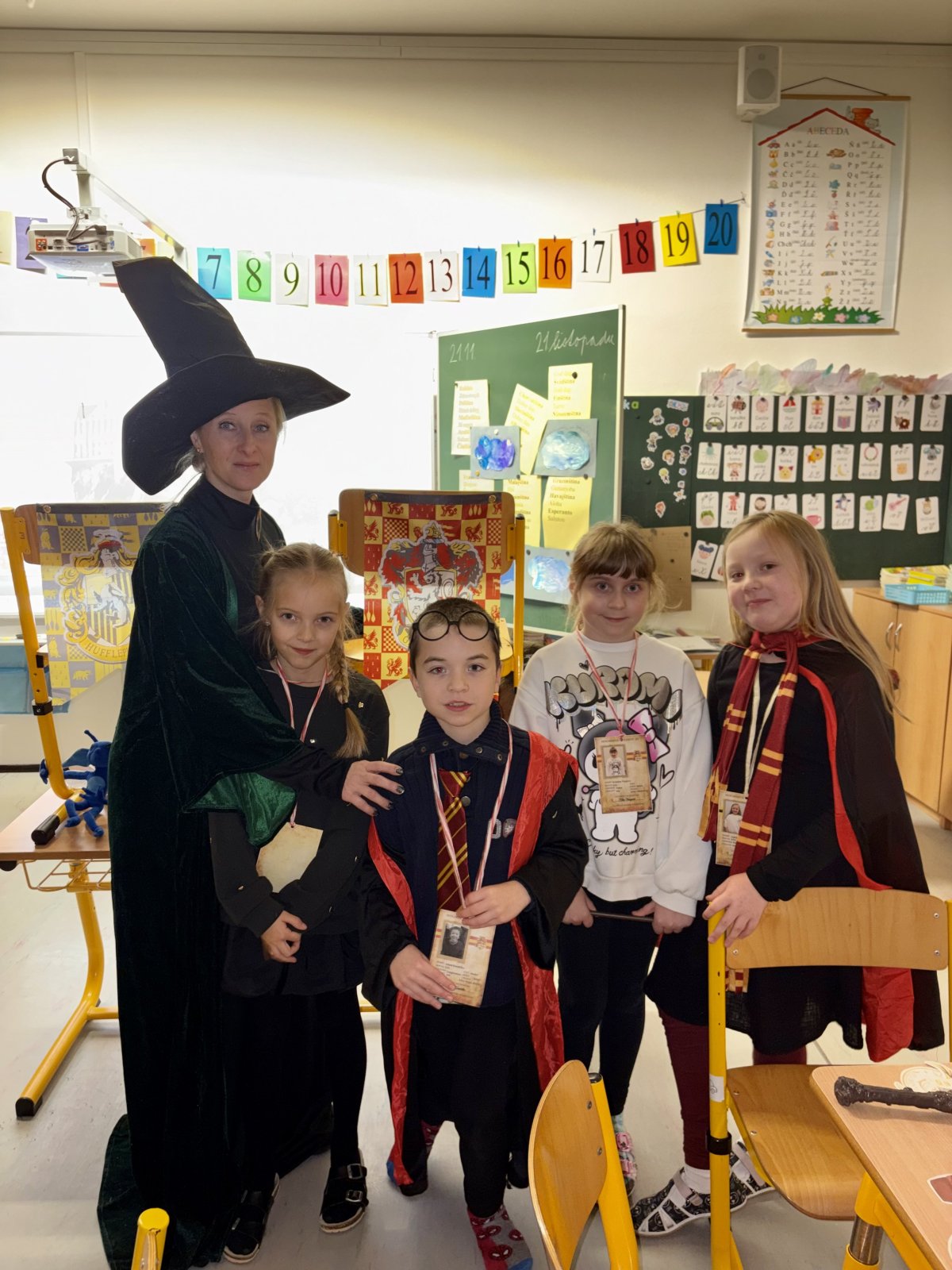 Po příjezdu do „Bradavic“ byly děti rozděleny do jednotlivých kolejí pomocí kouzelného klobouku. Celá třída byla tematicky vyzdobena a navozovala atmosféru slavné školy čar a kouzel.