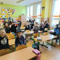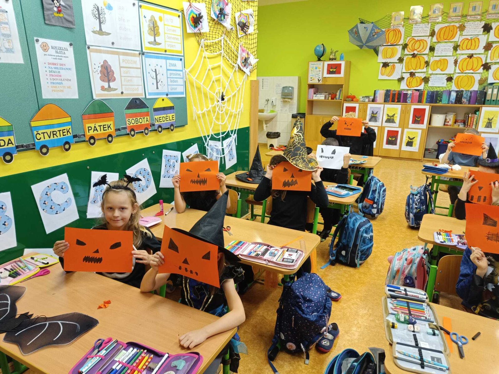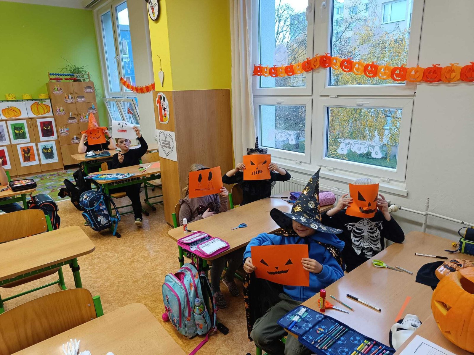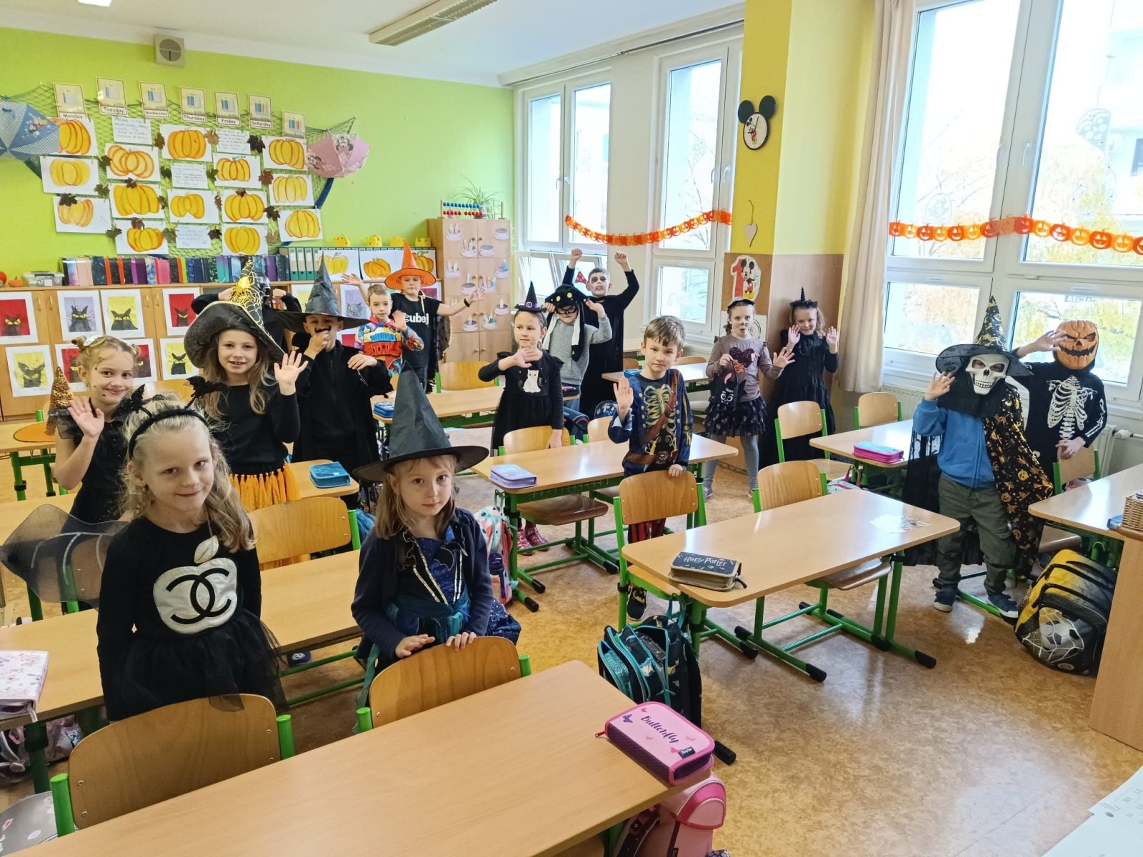 Ve čtvrtek 30. října jsme si v 1. B udělali projektový „Kouzelný den“. Využili jsme nadcházejícího anglosaského svátku Halloween a proměnili naši třídu v říši kouzel, tajemství a fantazie. Povídali jsme si o tom, že toto období bylo dříve vnímáno jako hranice mezi létem a zimou, světlem a tmou, mezi světem živých a zemřelých. S úctou jsme vzpomněli na naši českou tradici – Svátek zesnulých (Dušičky). Zapálili jsme svíčku za ty, kteří už nejsou mezi námi a připomněli si, že dokud na své blízké vzpomínáme, zůstávají v našich srdcích.