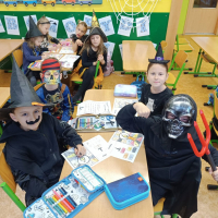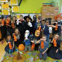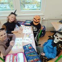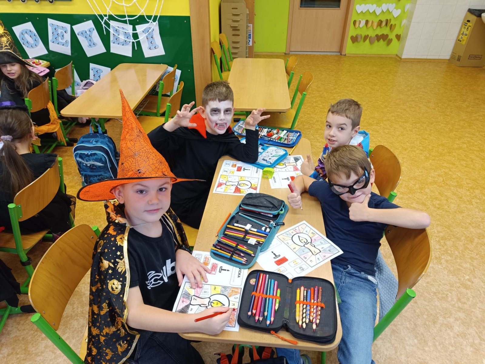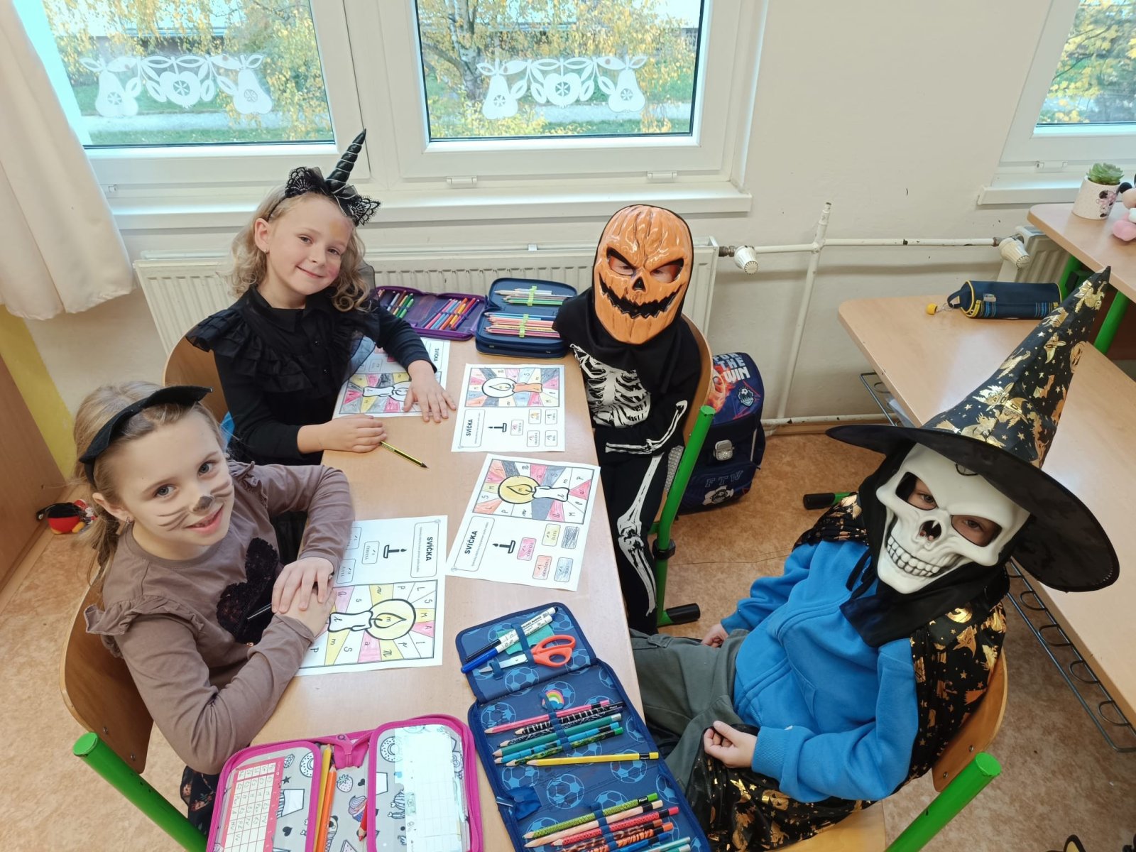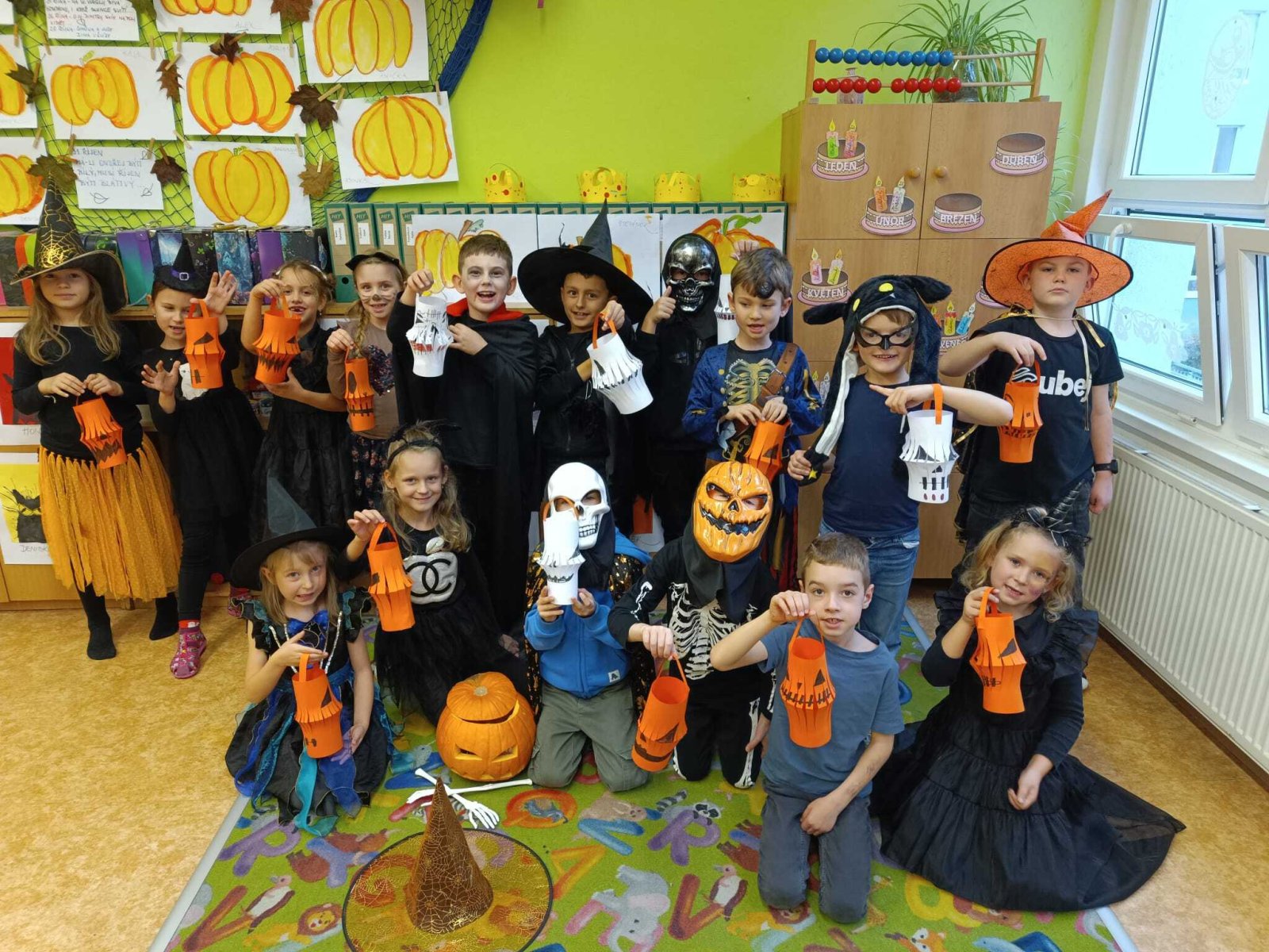 Kdo by neměl rád pohádky, strašidelné a tajemné příběhy či kouzla? Kdo by se nerad pohádkově chvíli bál? Naše výuka směřovala mezi čarodějnice, kostlivce, duchy, kočky, dýně a různé příšerky. Učili jsme se nové říkanky s ukazováním, procvičovali písmena S a O při kreslení sovy a hráli oblíbené Bingo. Pomocí čarodějného zaklínadla jsme chtěli, aby se úkoly psaly samy. Kouzlo se ale nepovedlo! Naštěstí nám napsala samotná čarodějka Saxana, která dětem vysvětlila, že i v říši kouzel platí: „Cvik dělá mistra.“ Na závěr jsme si vyrobili lucerničky, které nám budou připomínat, že kouzla se dějí hlavně tehdy, když na ně věříme.