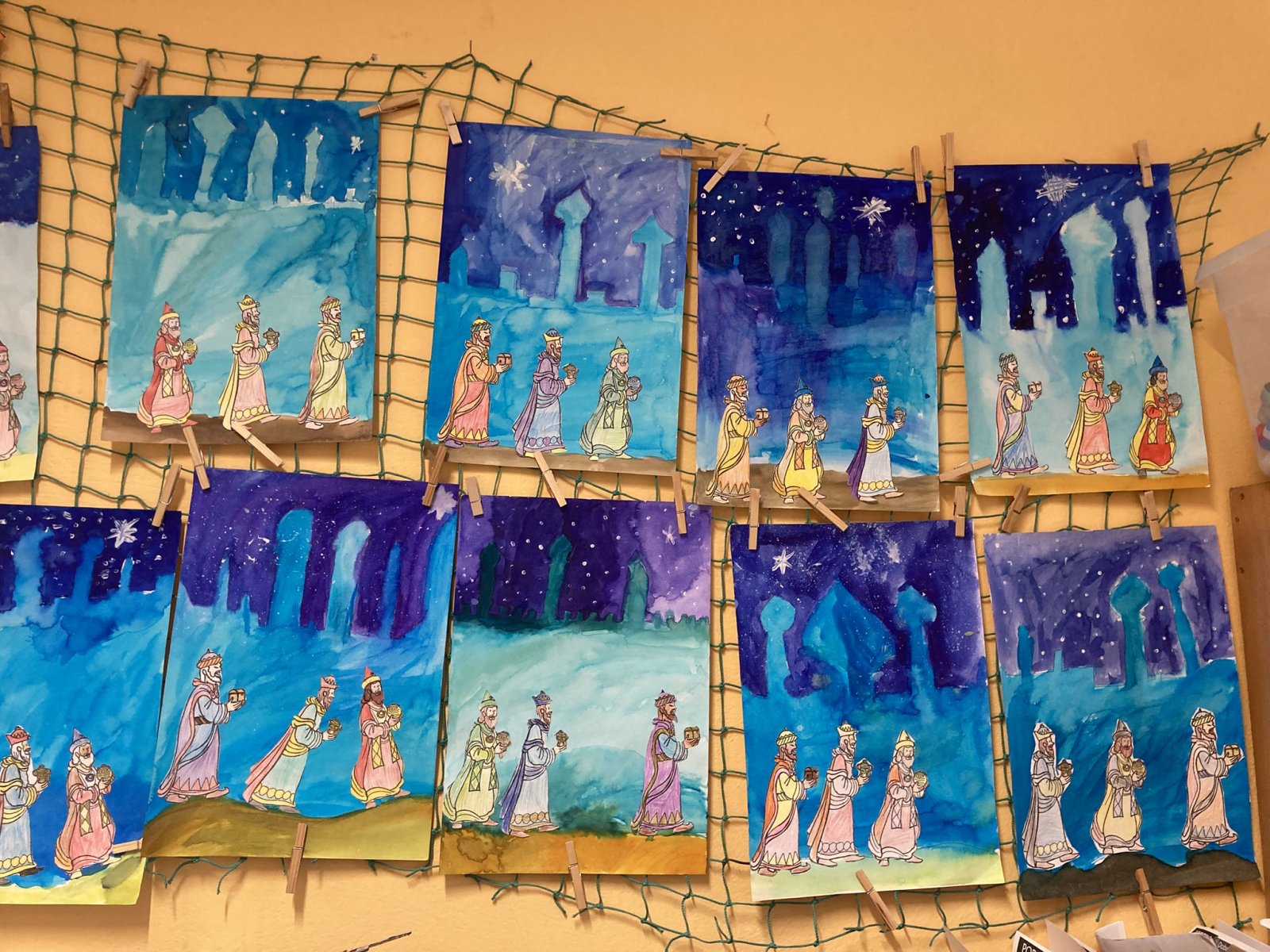 Z dětí se stali módní návrháři, kteří měli za úkol navrhnout zimní oblečení pro tuto sezónu. Ve třídě 3. E se naši výtvarníci věnovali tématu tří králů, kteří putovali za Ježíškem do Betléma. V první třídě děti pomocí mozaiky ztvárnily sýkorky v krmítku. Naši čtvrťáci zase koláží z hedvábného a novinového papíru vytvořili krásné sovice sněžní.