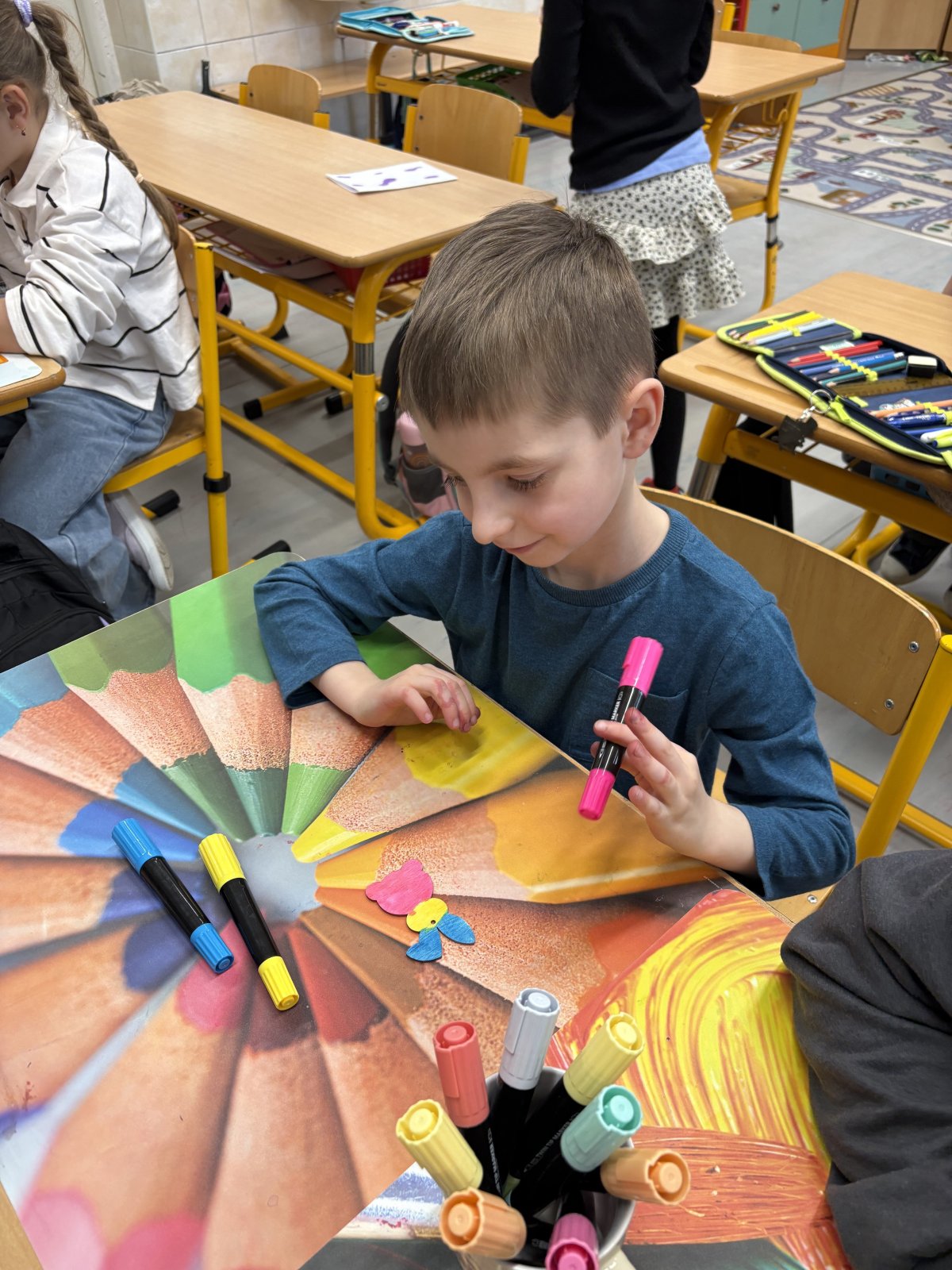 Dalším tématem bylo poznávání známých ilustrátorů a spisovatelů. Povídali jsme si o jejich práci, hráli si na ně a děti si zkusily vytvořit vlastní obaly na knihy a originální záložky.
