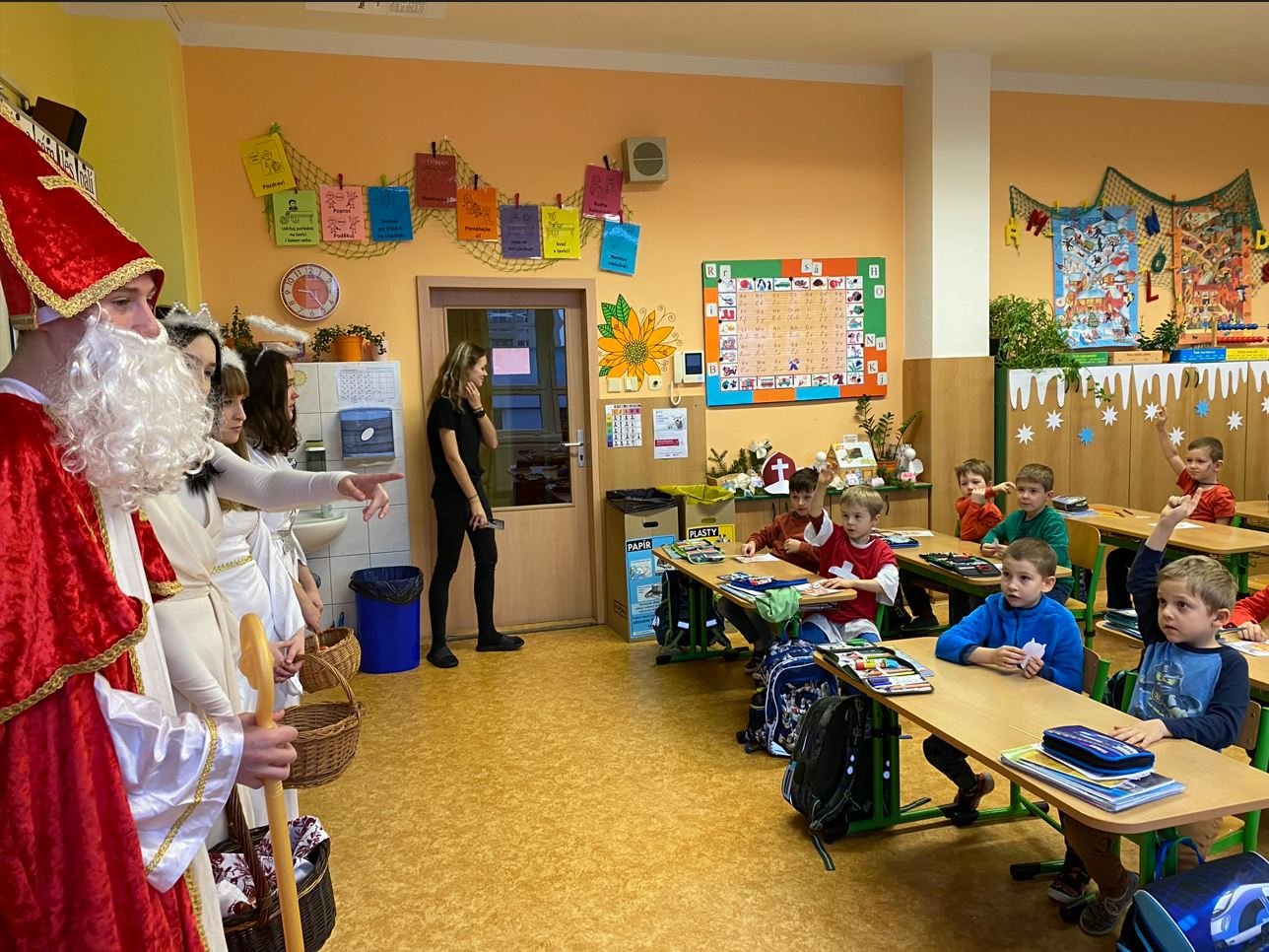 Když Mikuláš se svým doprovodem vešel do třídy a připravil si svou knihu, kde má poctivě zapsané důležité informace o všech dětech, tak některým dětem v tu chvíli trošičku zatrnulo. Naštěstí podle zprávy pana Mikuláše tu žádné velké zlobivce nemáme. Všichni si oddechli a pak recitovali, zpívali a tančili… Prvotní ostych tak ze všech dětí rychle opadl.