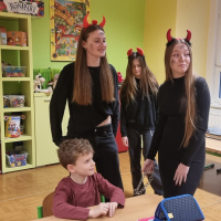 Po této milé návštěvě následovala „Čertí a andělská škola“. Paním učitelkám bylo jasné, že klasická výuka nemůže probíhat a chtěly udržet celý den tuto slavnostní náladu. A tak si pro děti připravily čertí a andělské hádanky, básničky, písničky, počítání, omalovánky a tanečky.
