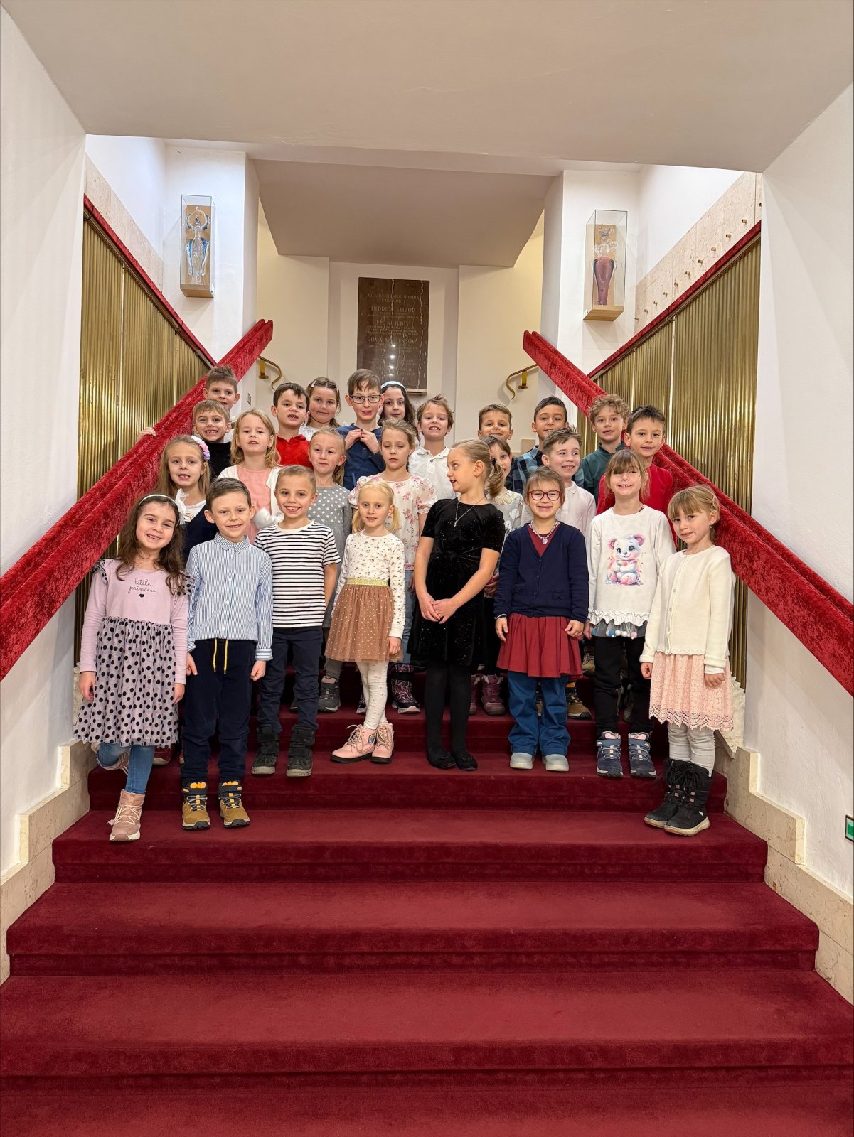 Prvňáčci se ve čtvrtek 27. listopadu vydali do Moravského divadla v Olomouci, kde na ně čekaly miniopery Jaroslava Uhlíře a Zdeňka Svěráka – představení plné hudby, fantazie a jemně vykresleného pohádkového světa, který děti doslova vtáhl do děje. Už při vstupu do divadla bylo vidět, jak se jejich oči rozzářily zvědavostí a očekáváním.