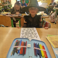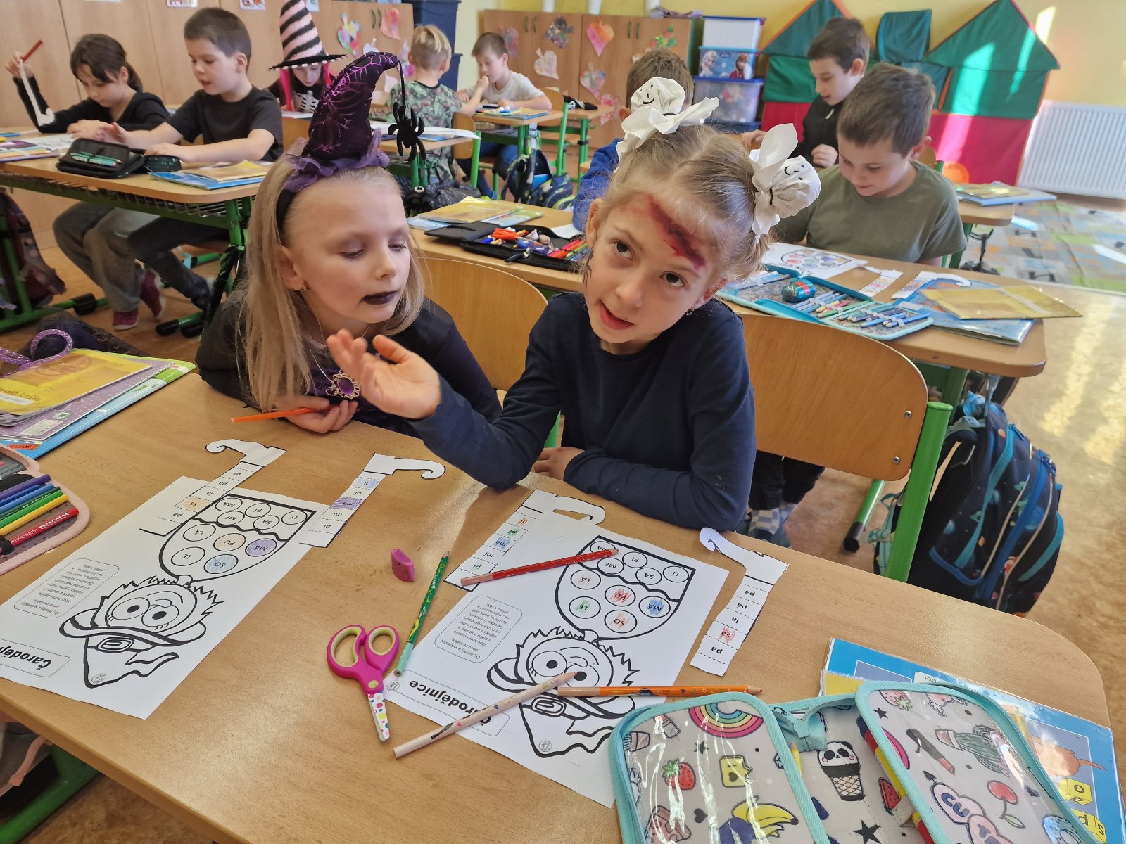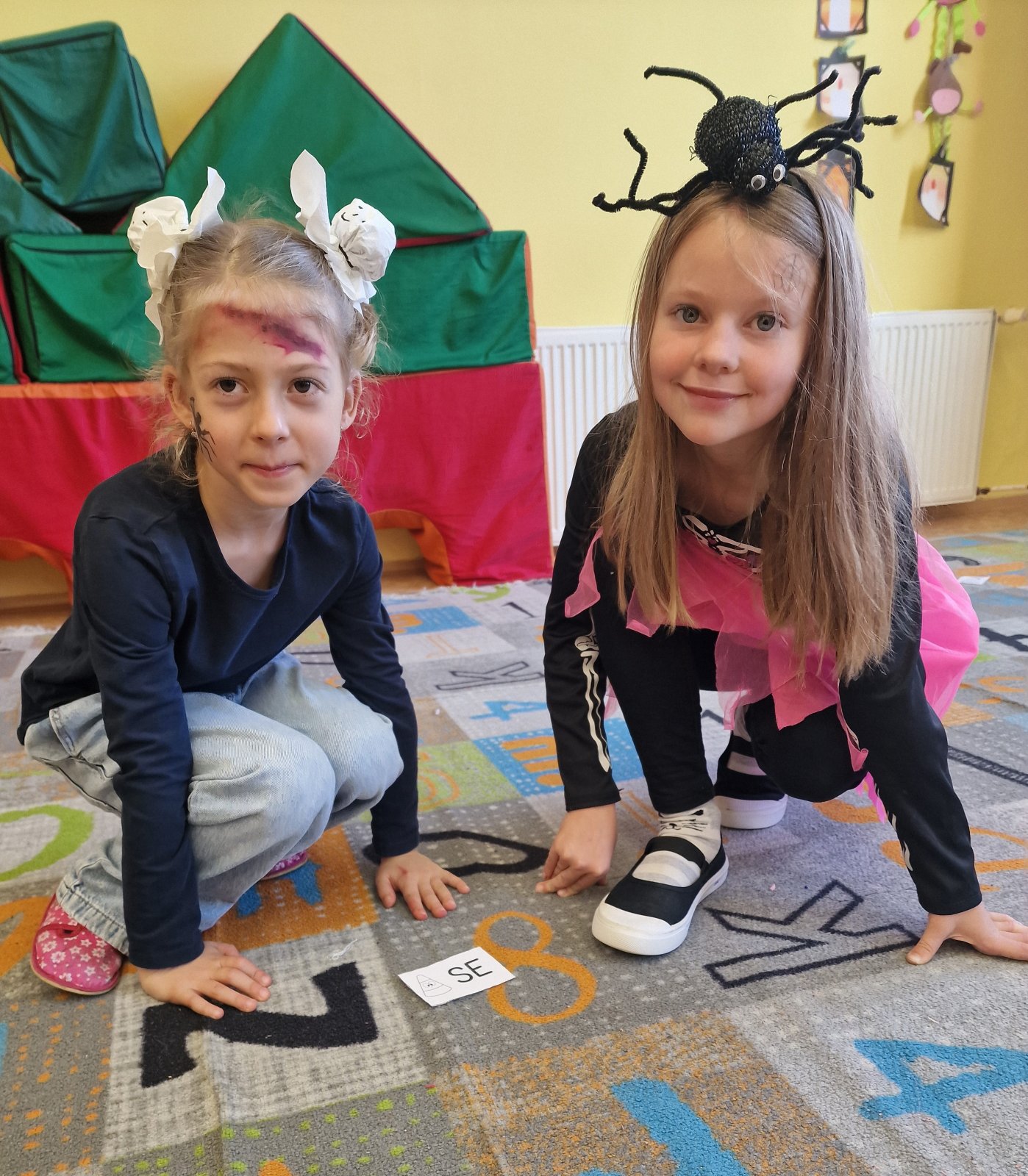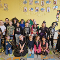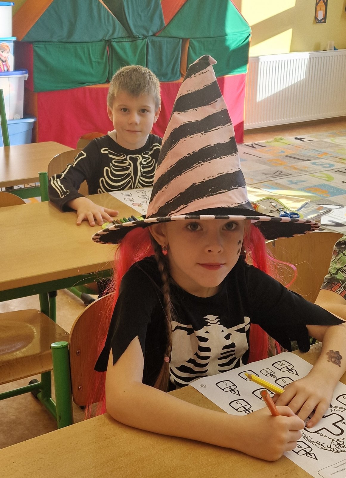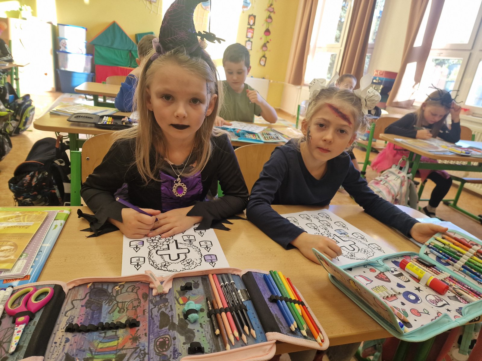 Páteční den se v první třídě proměnil v kouzelně temnou atmosféru. Místo běžného školního ruchu seděli v lavicích kostlivci, duchové a další tajemná stvoření. Děti si užily den plný fantazie, poznávání a zábavy, který jsme věnovali dvěma významným svátkům: Dušičkám a Halloweenu.