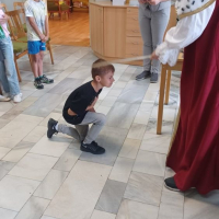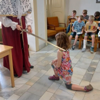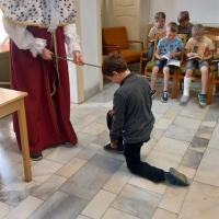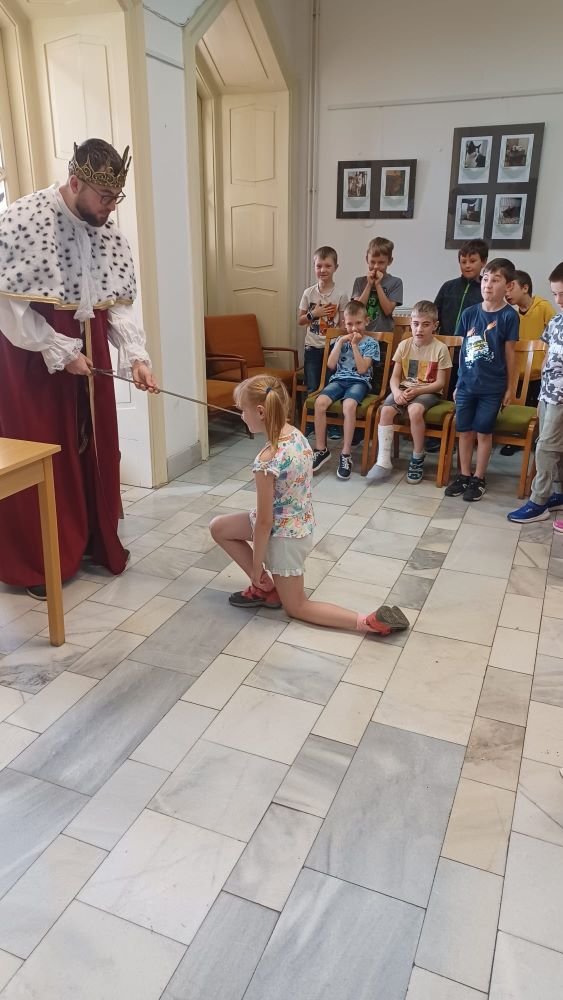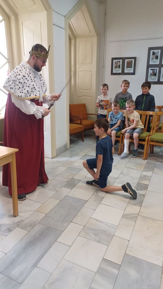 Samotný pan král z „Písmenkového království“ naše žáky pasoval historickým mečem na rytíře řádu čtenářského a povýšil je na čtenáře.