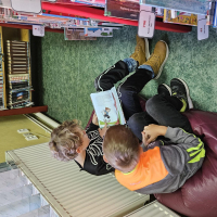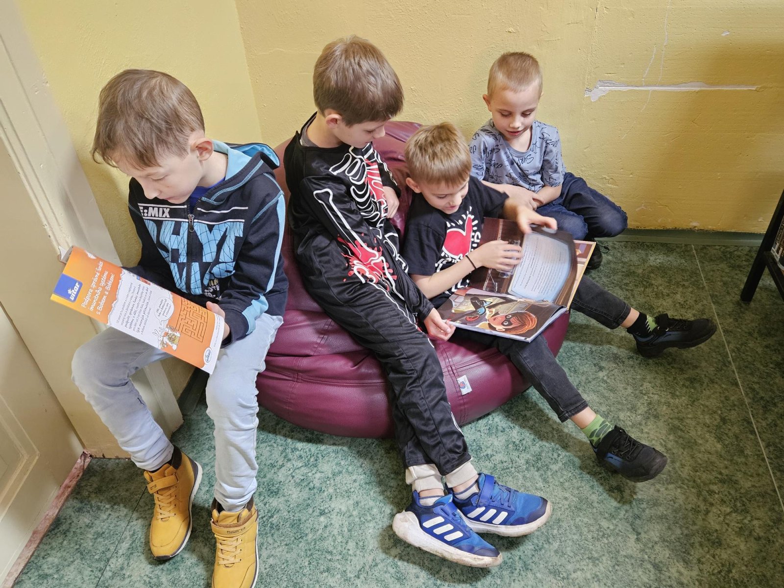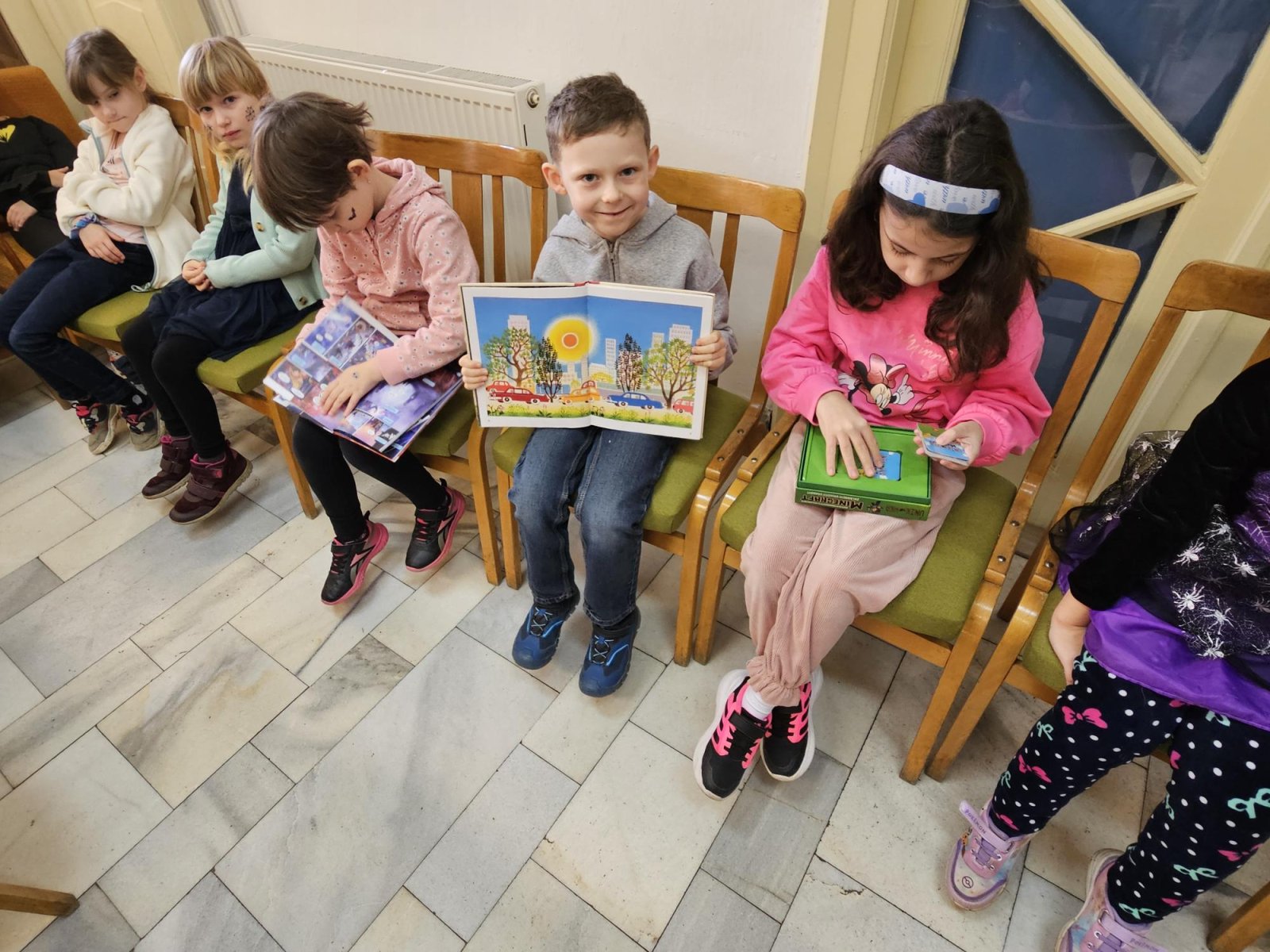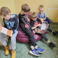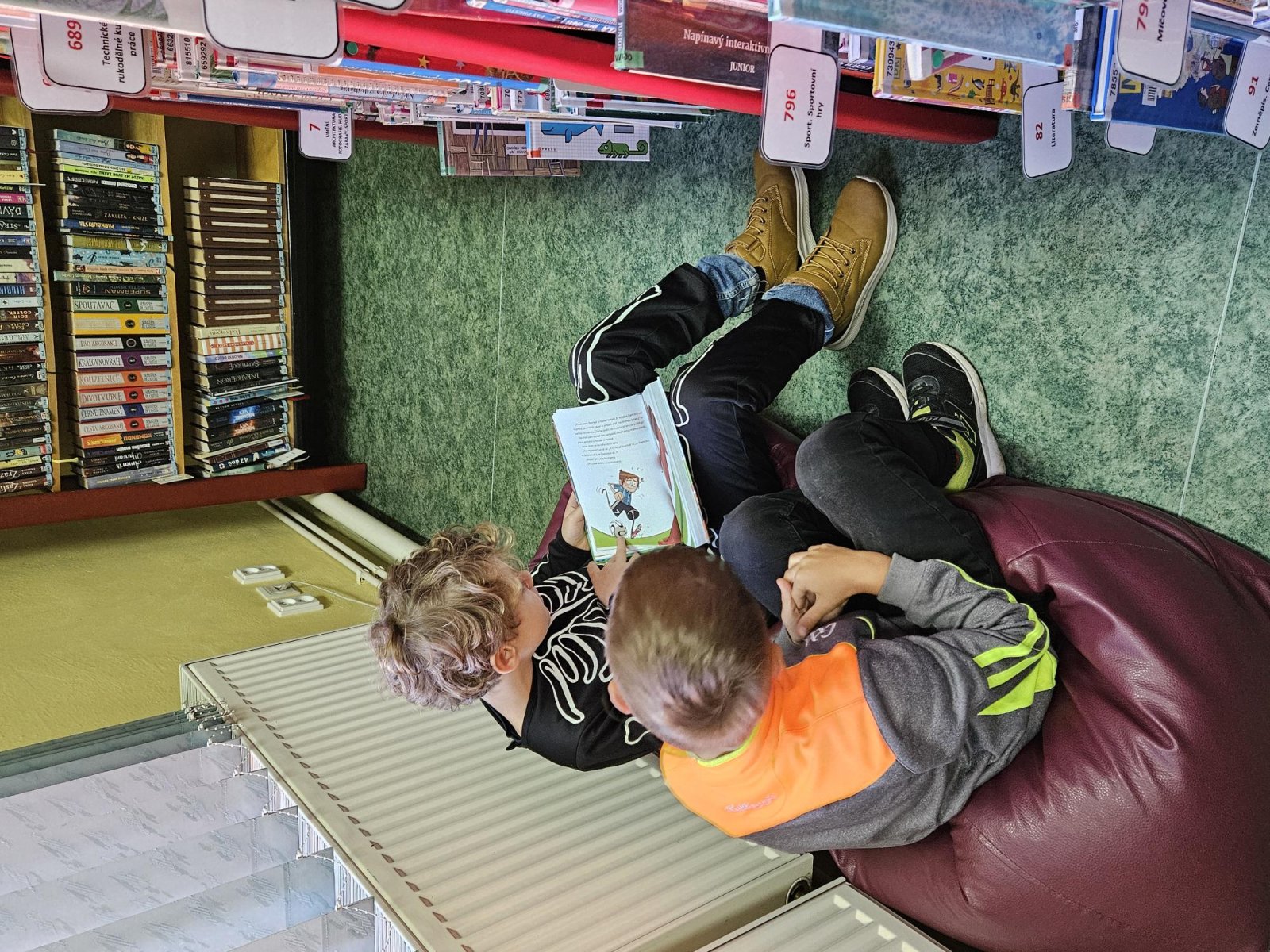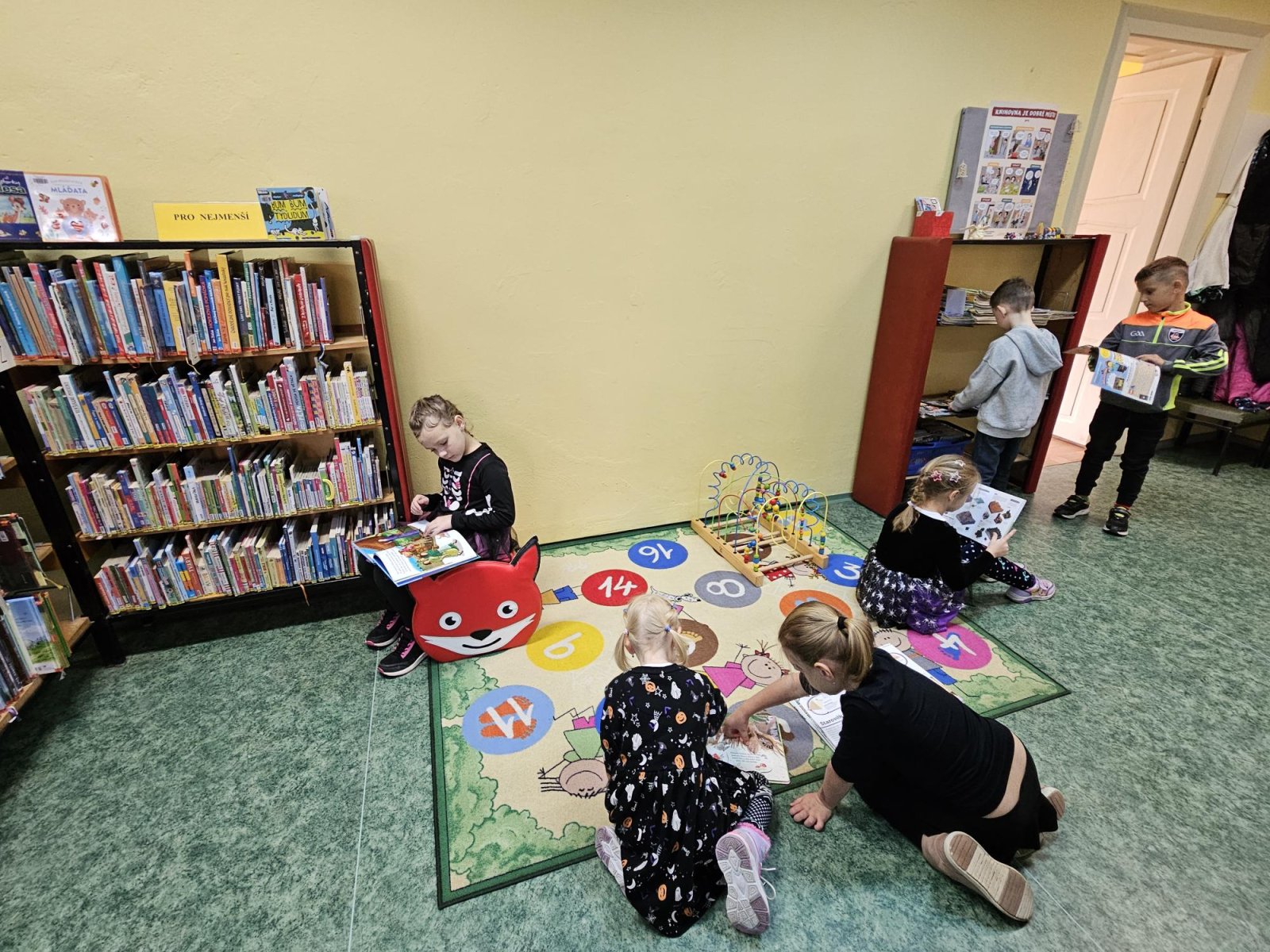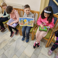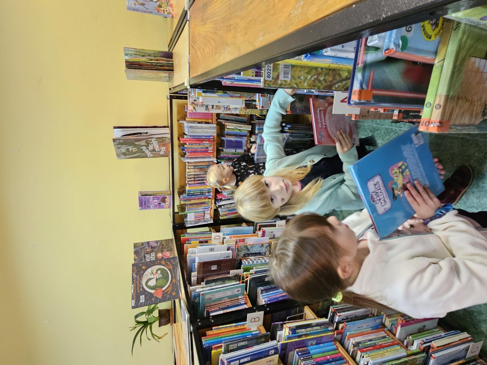 Pan knihovník děti provedl mezi regály, vysvětlil, co znamenají štítky na knihách, jak je ukládat a podle čeho vybírat. Největší úspěch mělo samozřejmě vlastní listování a prohlížení knížek – děti by nejradši zůstaly mezi nimi celý den!