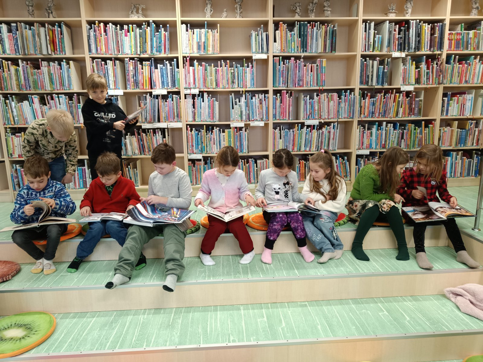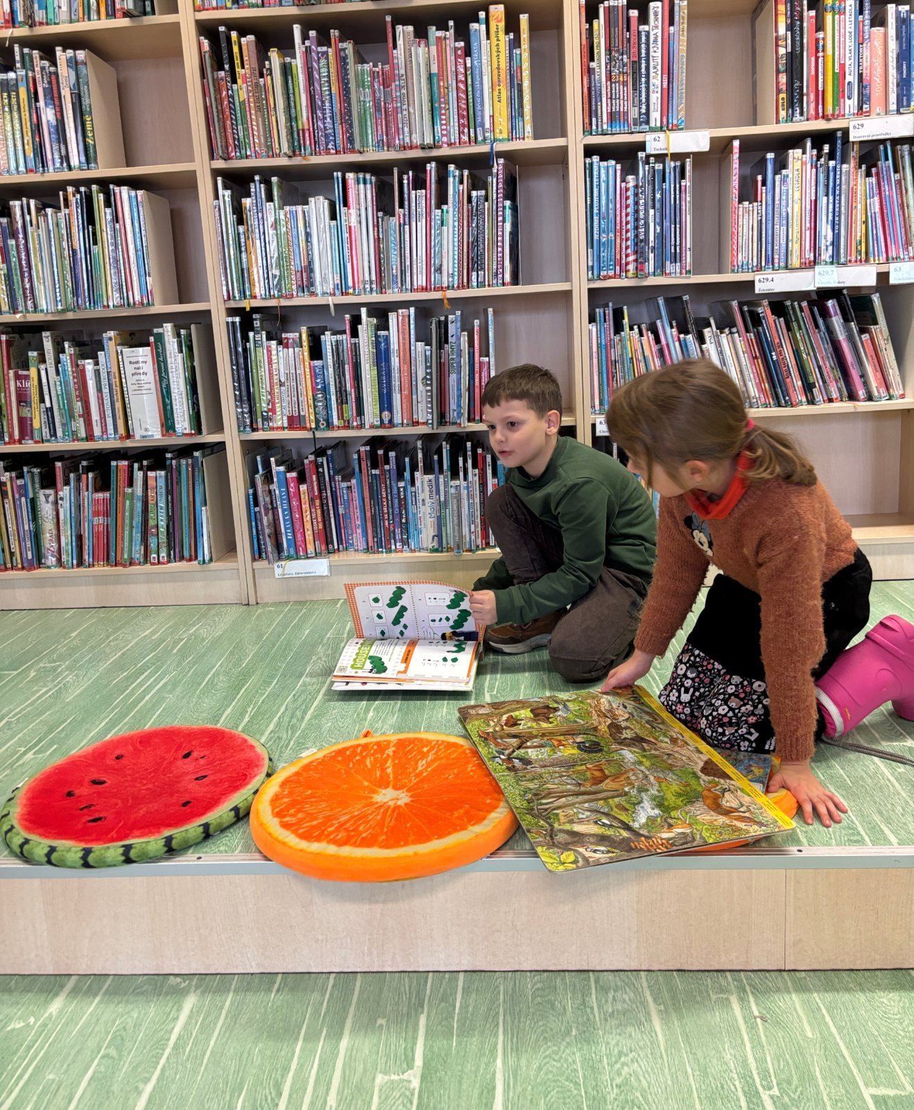 Prvňáčci plnili různé slovní úkoly, s nadšením spolupracovali a ukázali, že už se ve světě písmenek začínají dobře orientovat. Na závěr si mohli knihy také půjčovat a listovat v nich.