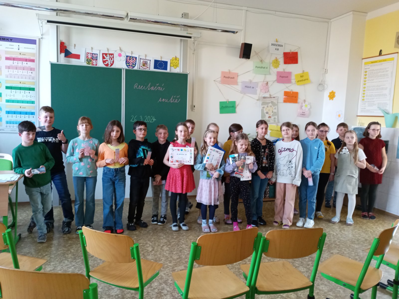 Po dlouhé době se na naší škole na 1. stupni uskutečnilo školní kolo recitační soutěže. Zde měli vítězové třídních kol příležitost ukázat svůj umělecký projev a předvést své recitační schopnosti v přednesu vybraných básní. Ty byly hodně vyrovnané, což pro čtyřčlennou porotu představovalo náročný výběr nejlepších recitátorů.