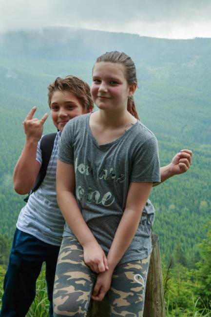 V pátek 16. 6. po deštivém ránu jsme nastoupili do vlaku směr Ramzová. Pak už na nás čekal jen dvouhodinový výšlap na chatu Jiřího na Šeráku do výšky 1351 m n. m. Před vrcholem Šeráku jsme rozhodli, že na vedlejší vrchol Keprníku už raději nepůjdeme, protože byl stále zahalený do mraků. Nakonec se to ukázalo jako správné rozhodnutí, protože právě od Keprníku přišla za hodinu obrovská průtrž mračen. Po dešti jsme zamířili na Obří skály a údolím Vražedného potoka zpět na Ramzovou. Po té, co jsme nastoupili do autobusu směr Hanušovice, začalo opět vydatně pršet.