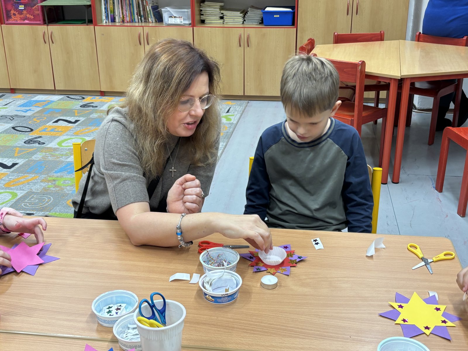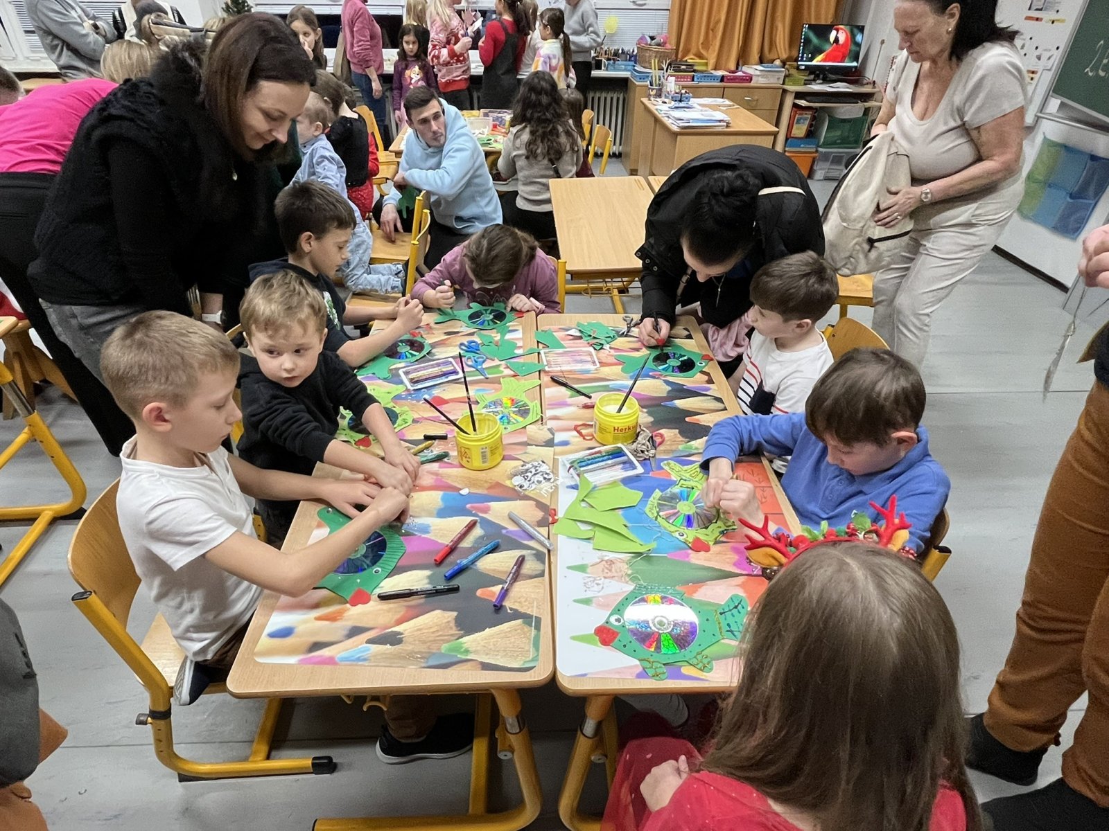 Ve čtvrtek 18. 12. proběhly na Čajdě tradiční Vánoční dílničky, které navodily krásnou předvánoční atmosféru. Děti si s nadšením vyráběly ozdoby na stromeček, skřítky, kapry i papírové svícny, nechybělo ani oblíbené zdobení perníčků. O příjemné zahřátí se postaral dětský punč a celý prostor se nesl v duchu vánočních koled. Program obohatilo vystoupení třídy 2. E a hudební vystoupení žáků 3. a 4. tříd. Celé odpoledne probíhalo v milé přátelské atmosféře, kdy se setkání dětí, rodičů a pedagogického sboru naladilo na blížící se Vánoce.