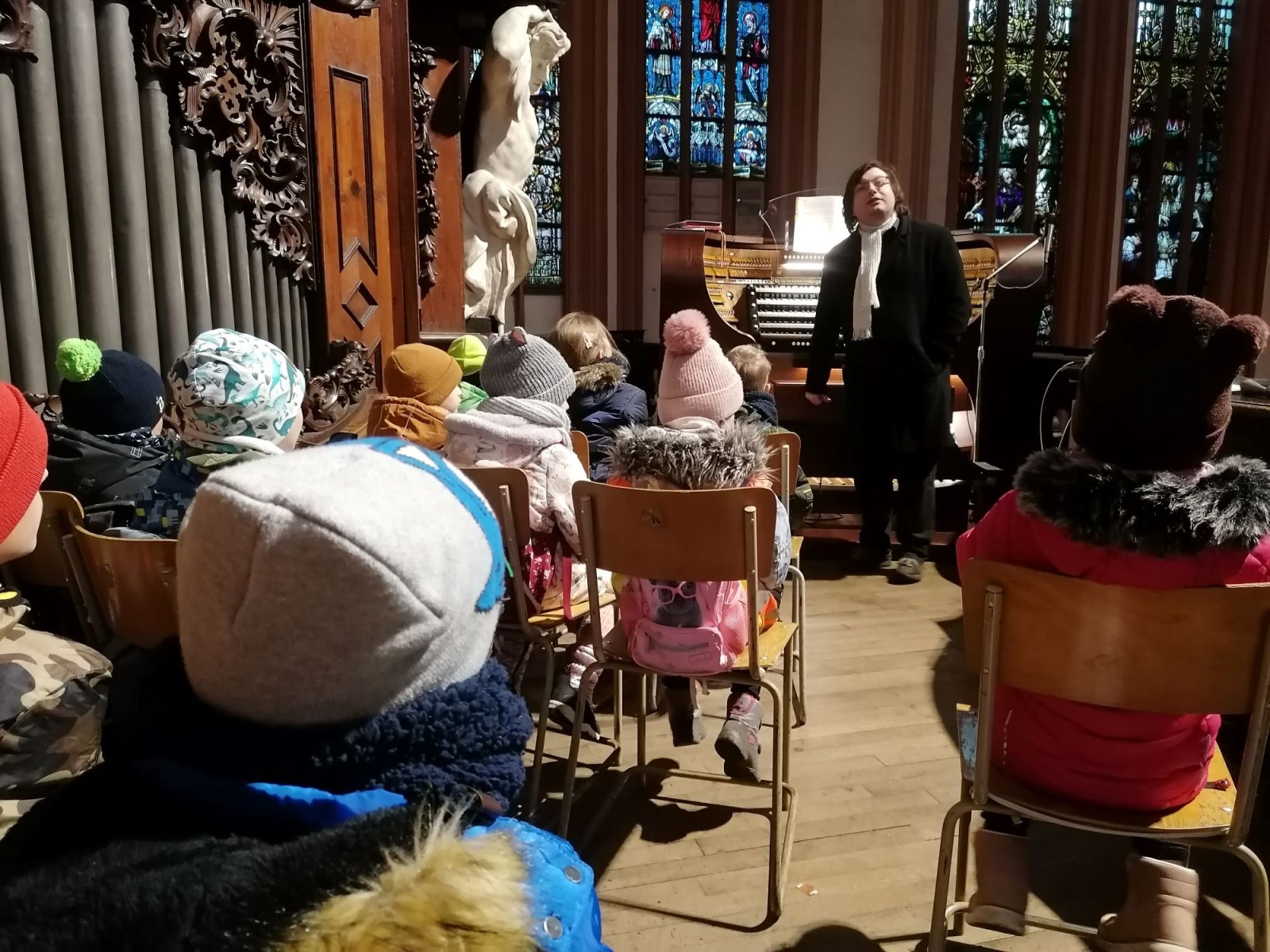 První třídy se 13. prosince vydaly na vánoční program do kostela sv. Mořice. U varhan, které patří k největším ve střední Evropě, si děti zazpívaly koledy a poslechly si část známé varhanní skladby. Odvážnější si také zkusily na varhany zahrát. Prohlédli jsme si zdejší betlém a zastavili se u poselství biblického příběhu ve farní kavárně. Opět nám zde připomněli, že to nejdůležitější, co si v životě můžeme dát, je ČAS.