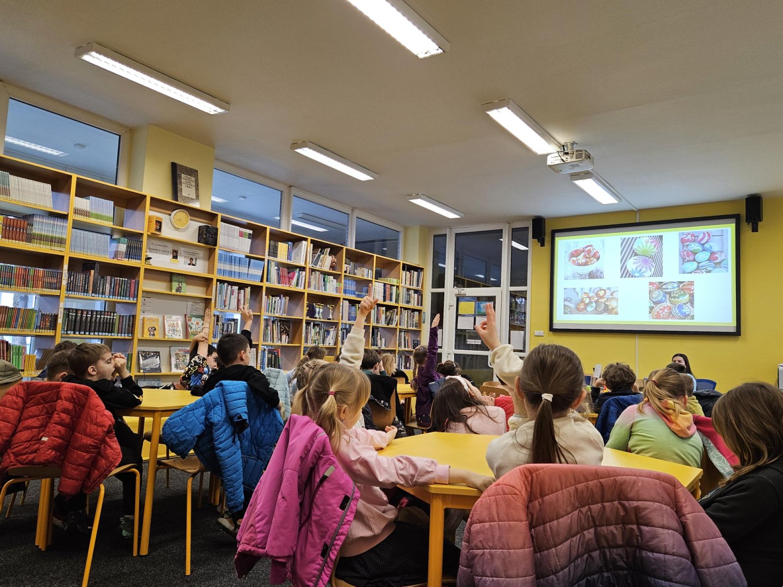 V uplynulých dnech se žáci 1. a 3. třídy vydali na návštěvu do školní knihovny na hlavní budově. Tentokrát na ně nečekalo jen prohlížení knížek, ale také velmi zajímavá a tematická beseda na téma Velikonoce.