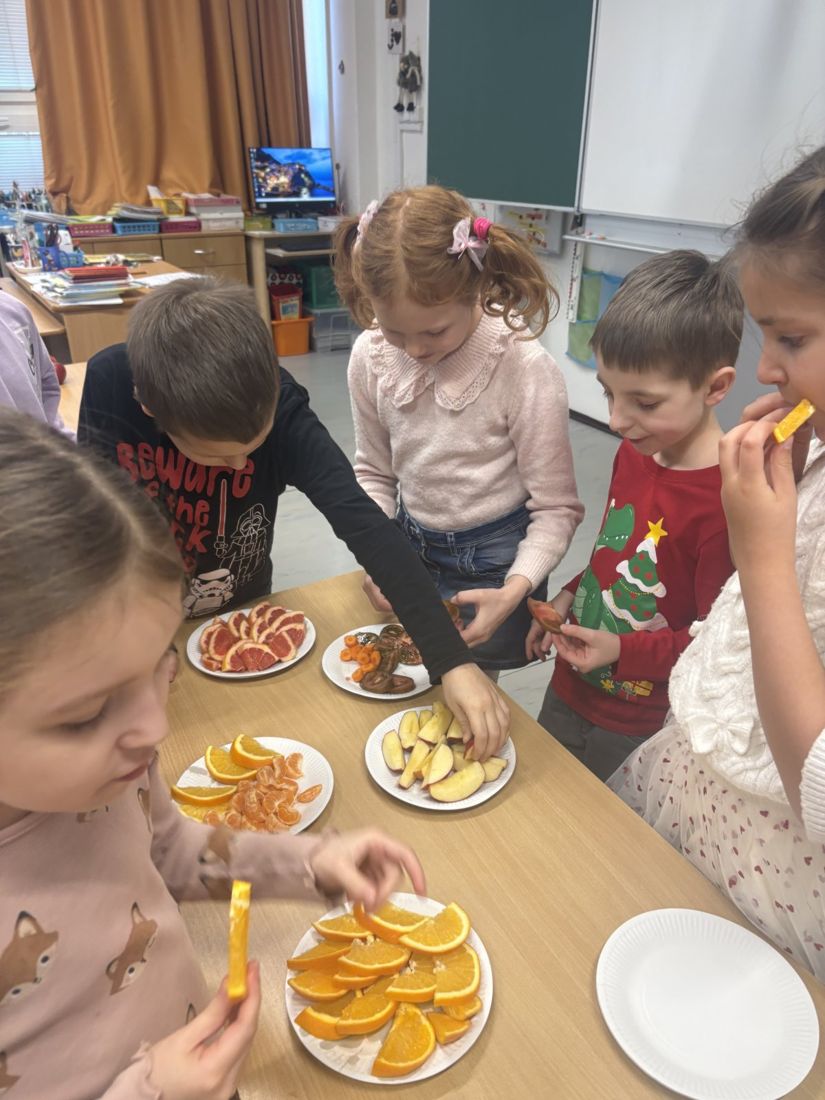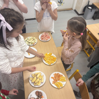Na závěr týdne jsme si připravili zdravé ovocné pohoštění. Děti si samy krájely ovoce a vytvořily barevné a chutné talíře plné vitamínů. Projektový týden jsme si všichni moc užili a odnesli si nejen nové znalosti, ale i inspiraci ke zdravějšímu životnímu stylu.