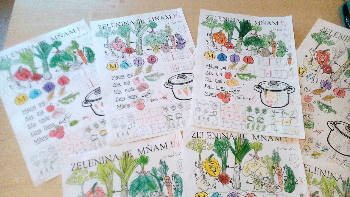 V rámci prvouky přišlo na řadu téma zelenina. S žáky 1.E jsme si proto ve třídě postupně vytvořili výstavku mnoha druhů zeleniny, nechyběly ani patisony, fazolové lusky a netradiční ačokča. Vše vyvrcholilo v úterý 17. října 2017, kdy jsme se zelenině věnovali celý den. Ten den jsme naši výstavku využili téměř do poslední ředkvičky. Procvičovali jsme si názvy, přiřazovali obrázky, luštili hádanky, počítali a četli v pracovním listu. A v poslední vyučovací hodině přišli na návštěvu tátové, maminky, dědové i babičky. Návštěvníci spolu s dětmi vytvořili týmy a pustili se do práce. Během 30 minut se proměnila výstavka na výtečné pohoštění. Všem skupinám se dílo zdařilo, takže jsme si na specialitách, jako např. Ředkvičkové překvapení či Čili chlebíčky, na závěr pochutnali. Nezapomnělo se ani na teplou kuchyni, uvařili jsme společnými silami i bramboračku.