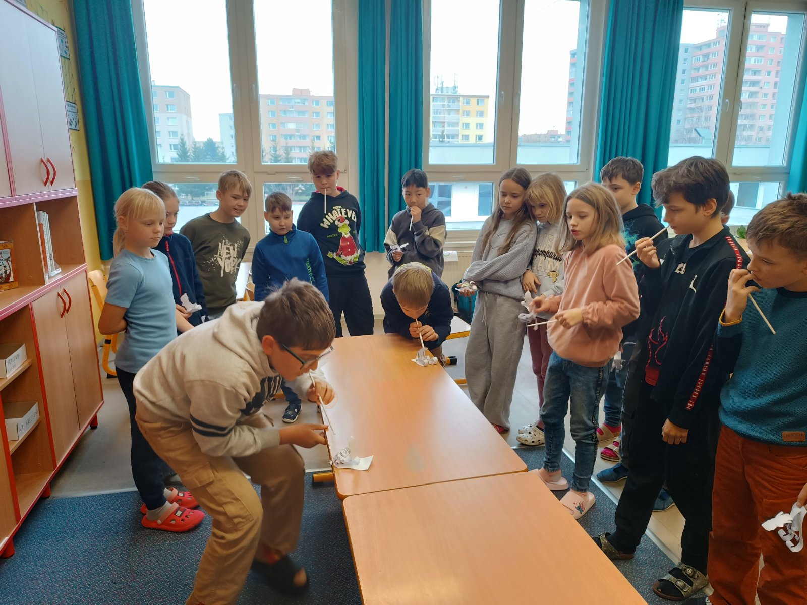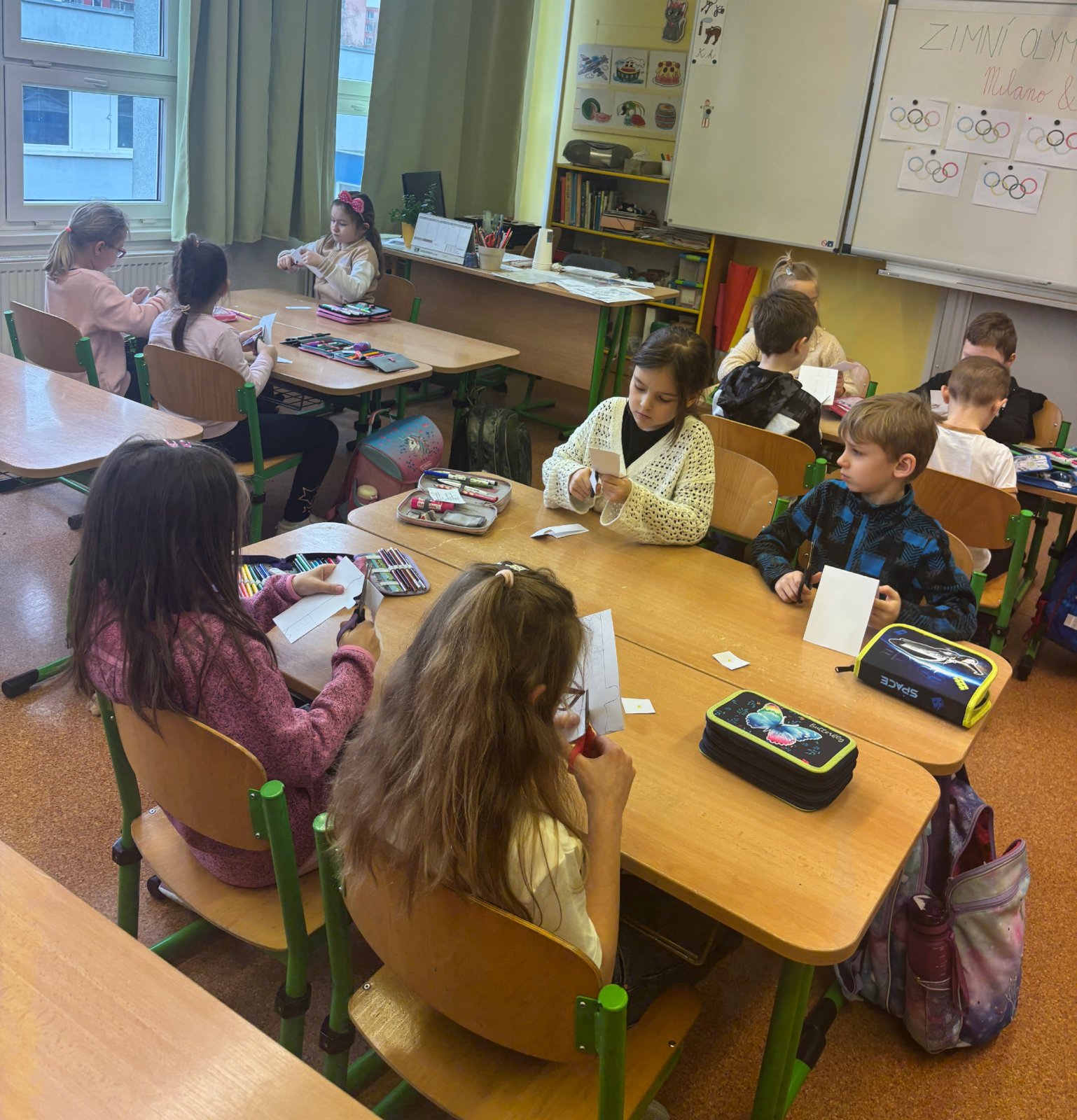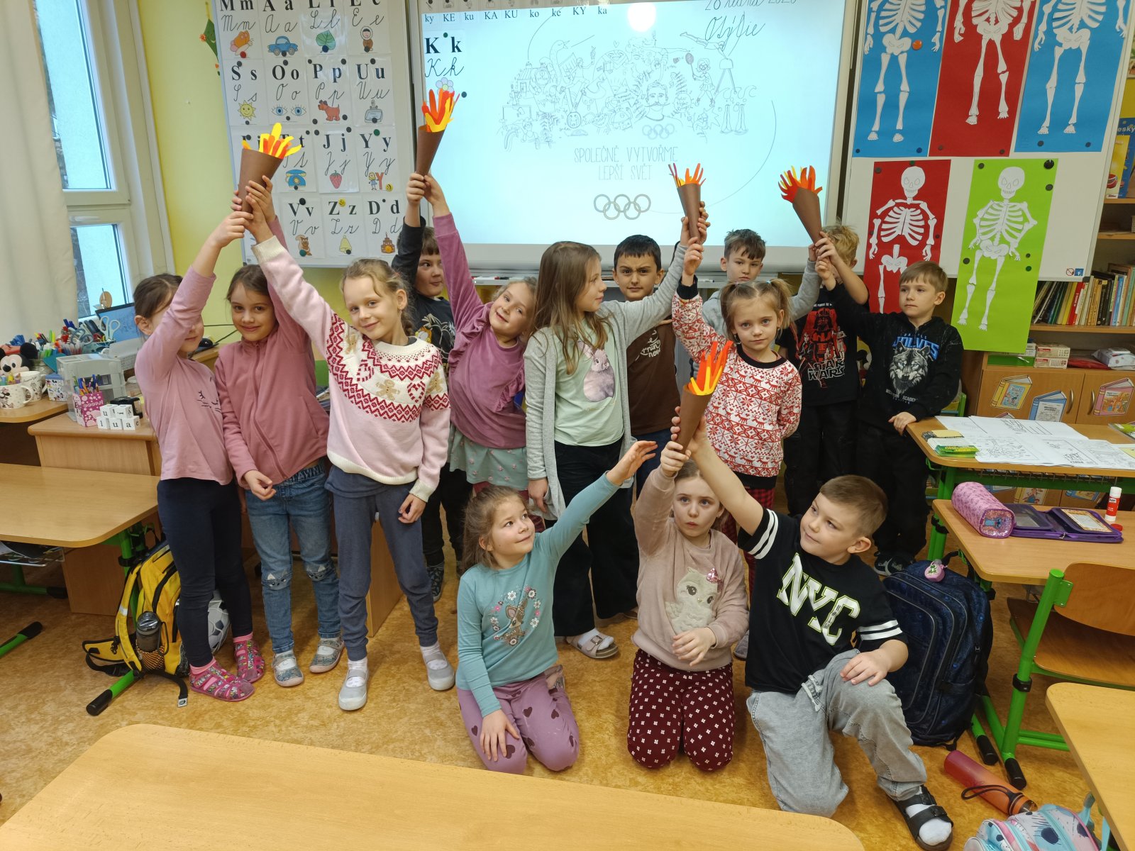Dnešní školní den se nesl v duchu chystaných zimních olympijských her. Už od rána panovala mezi žáky slavnostní atmosféra, která se ještě umocnila hned na úvod. Děti si samy vyrobily vlastní „hořící pochodeň“, symbol tradičního zahájení olympiády. Tím byl celý sportovní den oficiálně odstartován.