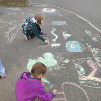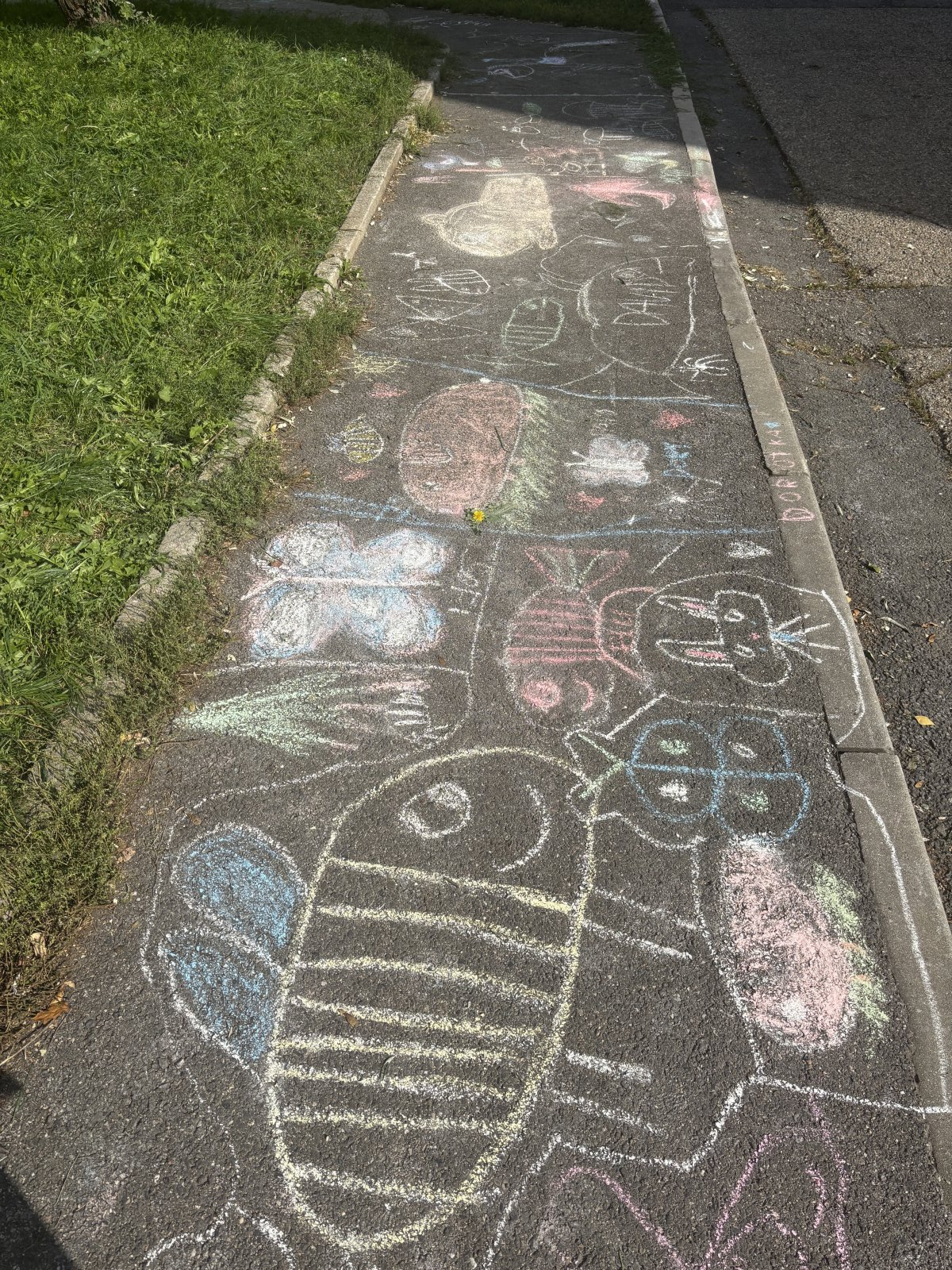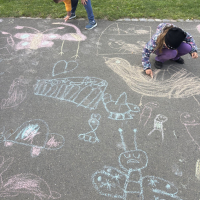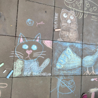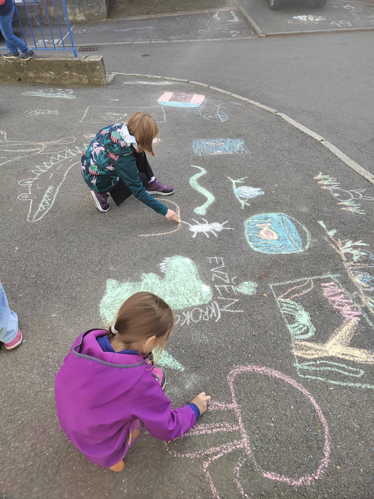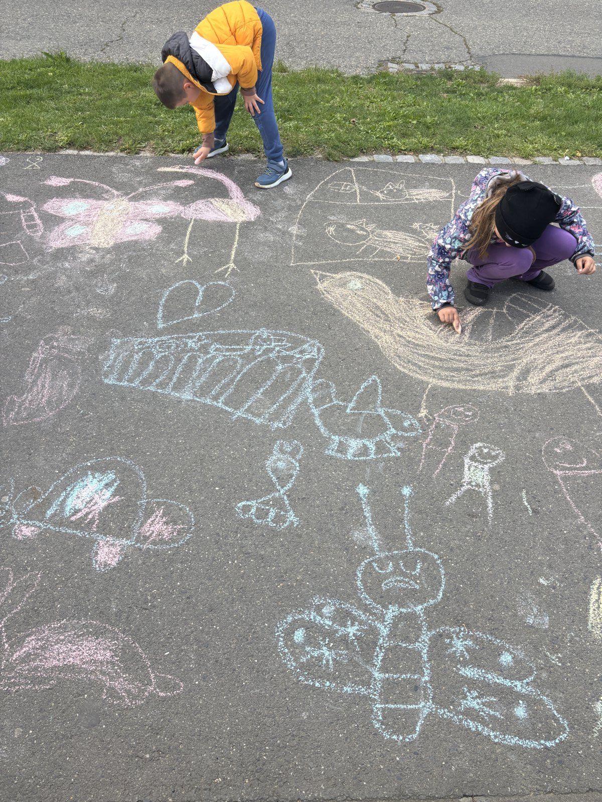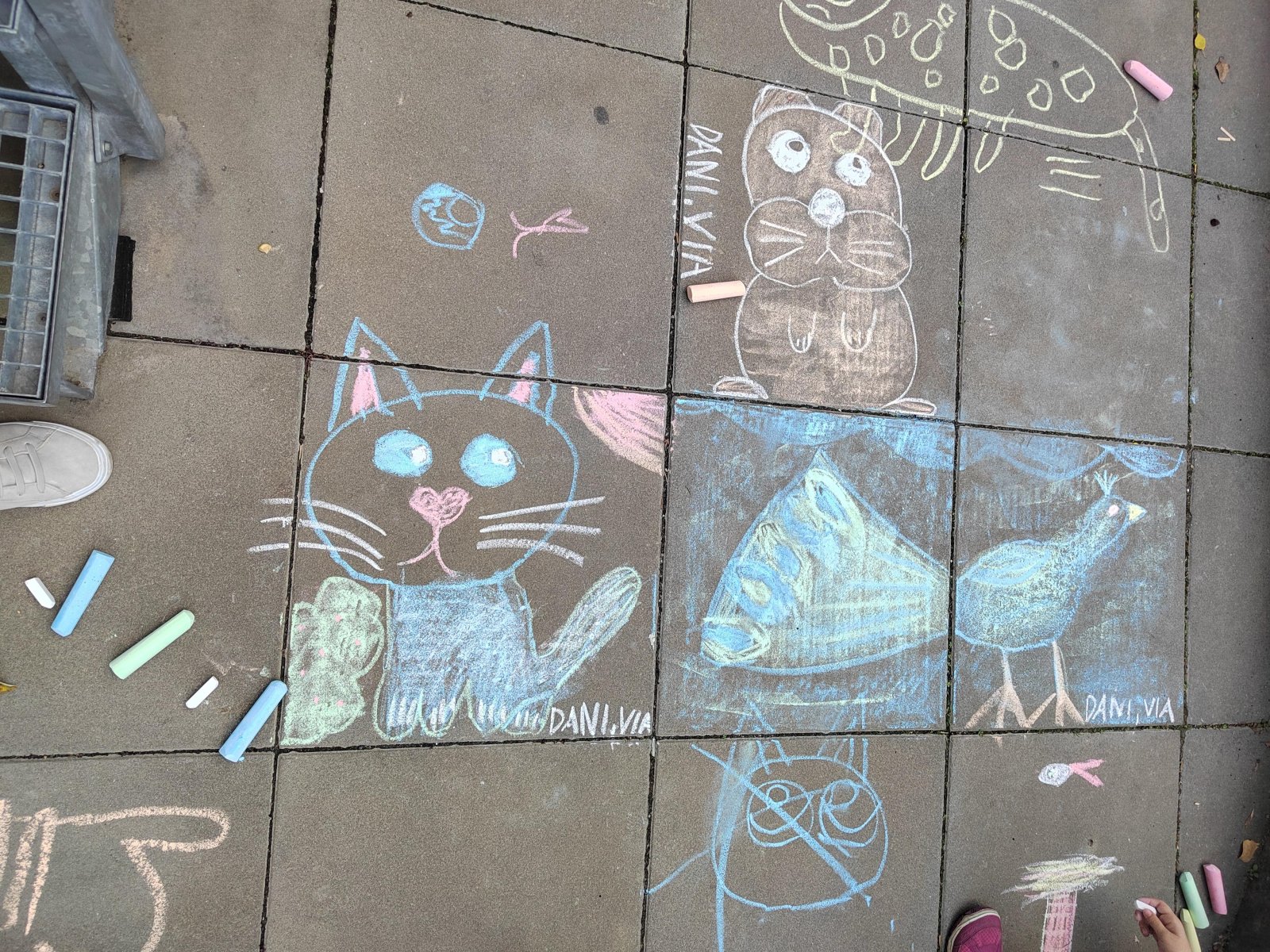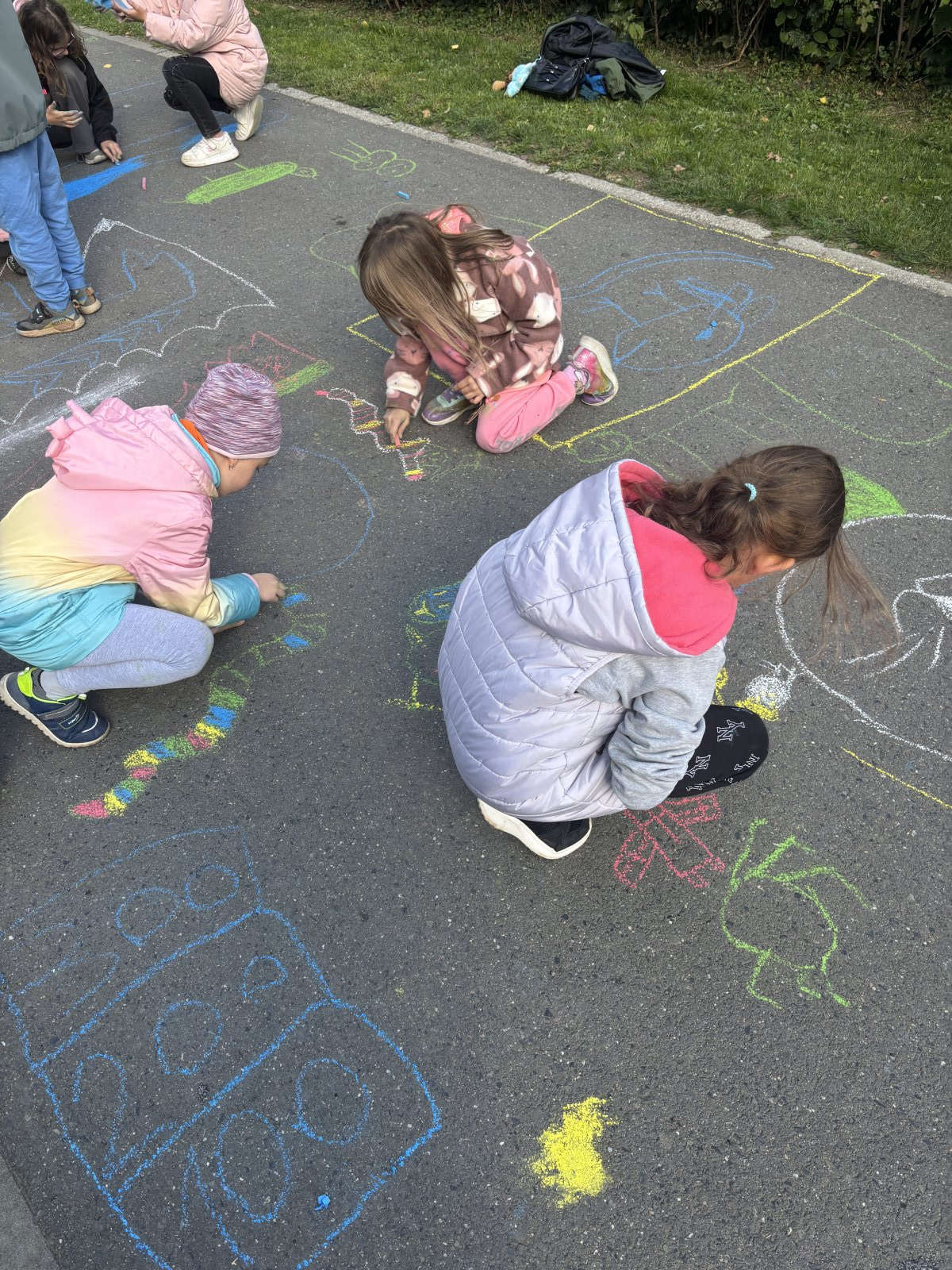 Svátek zvířátek naše školní družina oslavila malováním křídou na chodník. Tato činnost rozvíjí jemnou i hrubou motoriku. V tento den nám počasí přálo a chodník před školou se proměnil v barevnou galerii pod širým nebem. Děti si vybíraly z různobarevných kříd a s chutí se pustily do kreslení obrázků zvířátek. I když obrázky na chodníku nevydrží věčně, zážitky z této tvořivé činnosti v dětech zůstávají. Malování křídou je jednoduchá a přesto velmi oblíbená aktivita, ke které se rádi vracíme. Ať už jde o samotné tvoření nebo společné projekty, každá barevná stopa na chodníku je důkazem dětské fantazie a radosti z pohybu a hry. Děti měly celé ruce od křídy, některé i obličej, ale shodli jsme se, že nás společné malování na chodník moc bavilo.